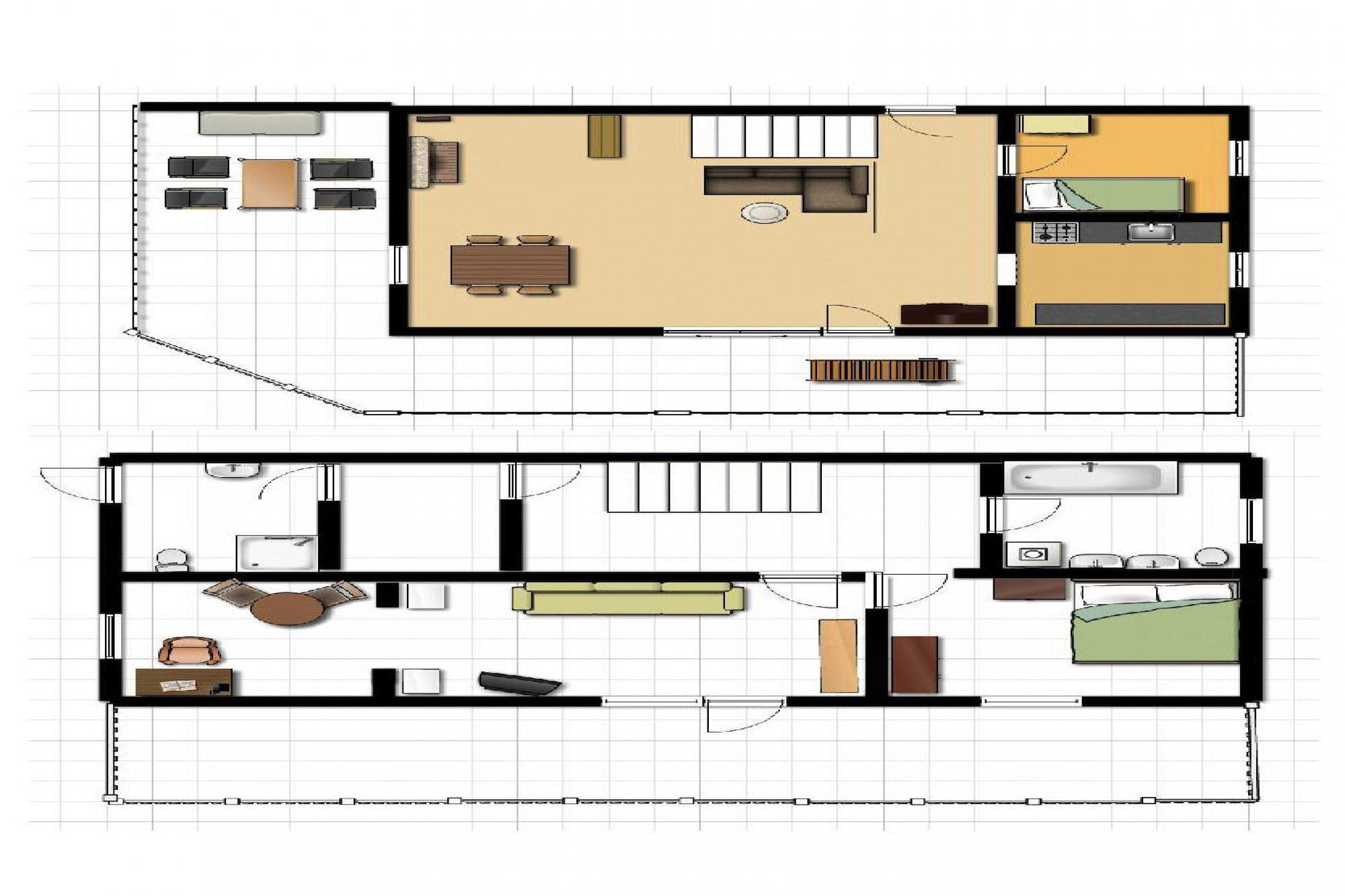 På 1. etage: (Stue/soveværelse(dobbeltsovesofa(180 x 200 cm), Fjernsyn, spisebord, sofahjørne, DVD-afspiller, radio, CD-afspiller), soveværelse(dobbeltseng(180 x 200 cm)), badeværelse(badekar, håndvask, toilet, føntørrer), badeværelse(bruser, håndvask, toilet, føntørrer), balkon) På 2. etage: (Køkken(kogeplade(Komfur med fire kogeplader, glaskeramisk), elkedel, brødrister, kaffemaskine, ovn, opvaskemaskine , køle-fryseskab, Blender), stue / spisestue(Fjernsyn, spisebord, pejs, sofahjørne), soveværelse(køjeseng(90 x 200 cm)), balkon) vaskemaskine, varme(olie), terrasse, havemøbler, grill(trækul), parkering, parkering, Parasol, strygebræt, hyggespil, legetøj, baby crib(free), Vaskeripakke mod et gebyr