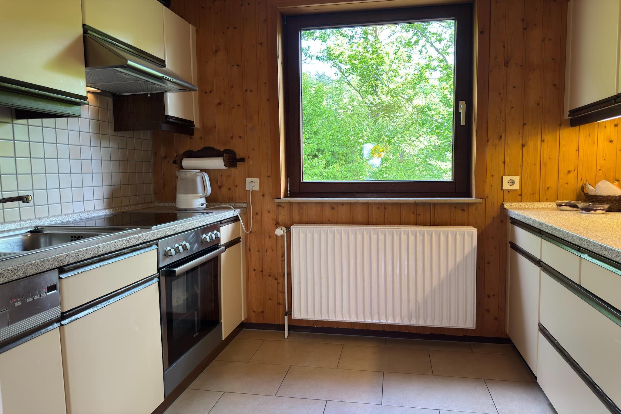 Det rummelige, renoverede og nyindrettede feriehus vil overbevise jer med sin generøse planløsning i to etager og 110 kvadratmeter. Den rolige beliggenhed af huset bygget på skråningen er ideel til at trække styrke og energi. Fra den store, overdækkede altan på 1. sal og 2. udækkede altan på 2. sal samt diverse terrasser har I en idyllisk udsigt over skovgrunden. Herfra kan du nyde den smukke udsigt over Edertal og det 673 meter høje bjerg "Sackpfeife". Hatzfeld ligger i den typiske lave bjergkæde i Oberedertal. De højeste toppe her stiger til 674 meter (sækkepiber). På alle årstider er der altid vidunderlige perspektiver at opdage. Brug tiden på for eksempel en kanotur eller fiskeri. Byen og den tilstødende bydel Waldeck-Frankenberg tilbyder sine besøgende adskillige fritidsaktiviteter. Detaljer: WiFi Aktiviteter i nærheden: Hessische Bergenland tilbyder en bred vifte af rekreative aktiviteter både sommer og vinter. Det smukke landskab er ideelt til vandreture eller stavgang. Stierne er meget godt afmærkede og sidst men ikke mindst er de blevet belønnet med en pris fra det tyske Vandreinstitut. Cykelstien Ederauen (200 km) fører direkte gennem landsbyen 1 km væk, eller sækkepiben med sommerkælkebakke er kun otte km væk. Edertalsperre og Waldeck Slot, 60 kilometer væk, eller Bad Berleburg, Marburg og Frankenberg er også et besøg værd. Der er også meget at opleve i det kendte vintersportsområde Winterberg Ikke egnet til personer med nedsat mobilitet