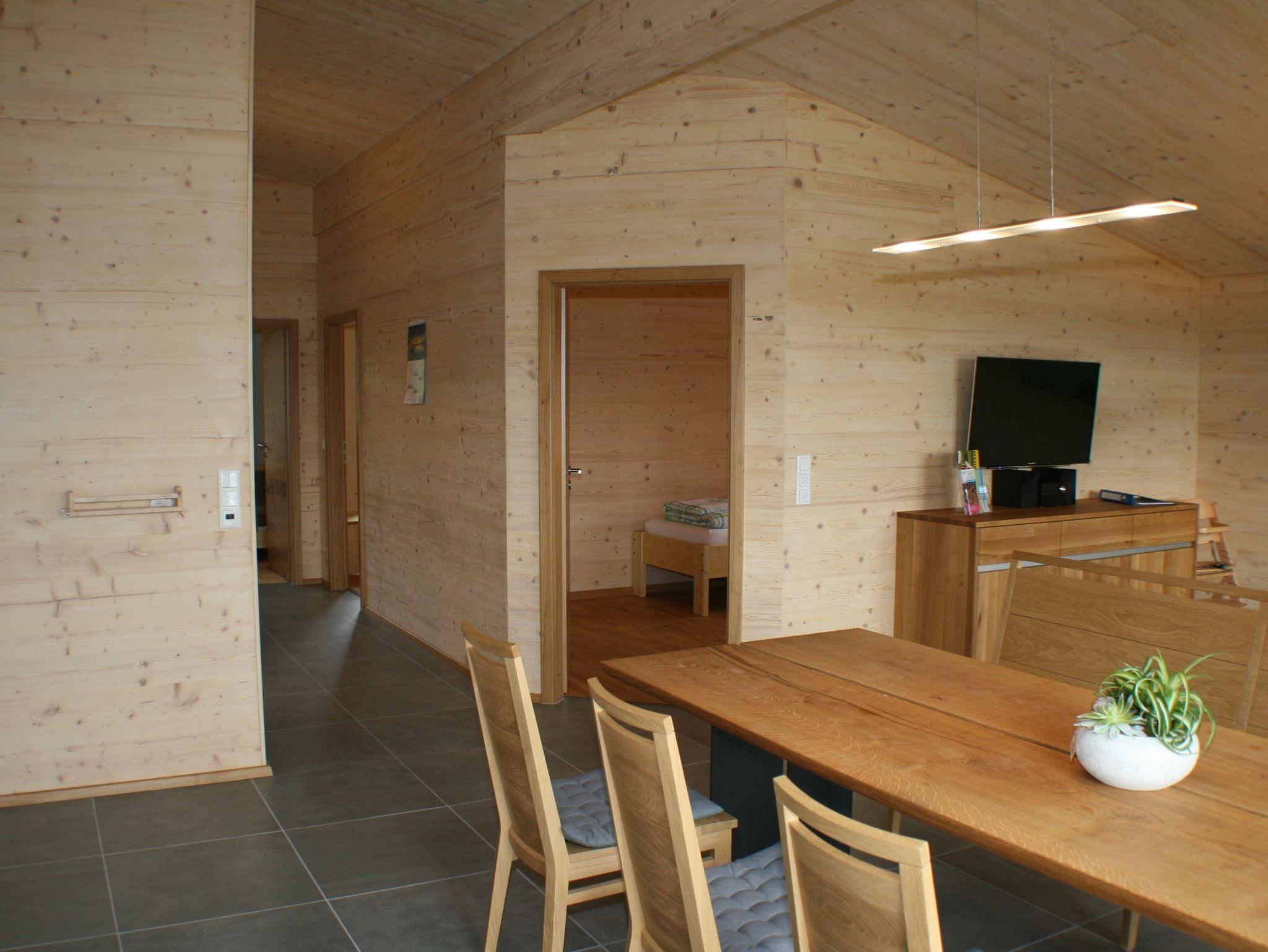 Morgentau - die 86 m² große Komfort-Ferienwohnung liegt im Obergeschoß von Haus 1 und ist über eine außenliegende Treppe gut erreichbar. Die besondere offene Bauart, sorgt für ein luftiges Raumgefühl und verleiht der Wohnung einen großzügigen, ausgeglichenen Charakter. Wir verwendeten bei der Bauphase und Ausstattung ausschließlich ökologische, natürliche Produkte. Daher ist die Wohnung sehr gut für Allergiker geeignet. Sie verfügt über eine große Süd/West-Terrasse mit freiem Blick über Wiesen und Äcker bis hin zum Mönchswald und Haundorfer Weiher. Ausgestattet mit einer Sitzgruppe und Sonnenschirm.