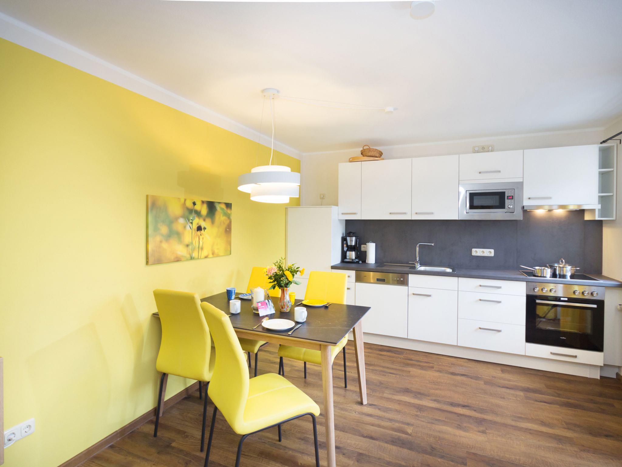 Sie werden sich in dieser großzügigen und hellen Sonnenwohnung im Erdgeschoss gleich wie Zuhause fühlen. 80 qm Wohnfläche bieten Ihnen jede Menge Platz für einen entspannten Urlaub. Die Wohnung ist für bis zu 4 Personen bestens geeignet und verfügt auch über ein separates Kinderzimmer. Auf der herrlichen Südwest-Terrasse starten Sie mit frischen Semmeln, hofeigener Marmelade und einem leckeren Milchkaffee in den Tag. Ihre Kinder oder Enkel erreichen von der Terrasse aus direkt die großen Spielbereiche. Die moderne und hochwertige Ausstattung der Wohnung garantiert Ihnen einen F****-Sterne-Komfort (DTV).