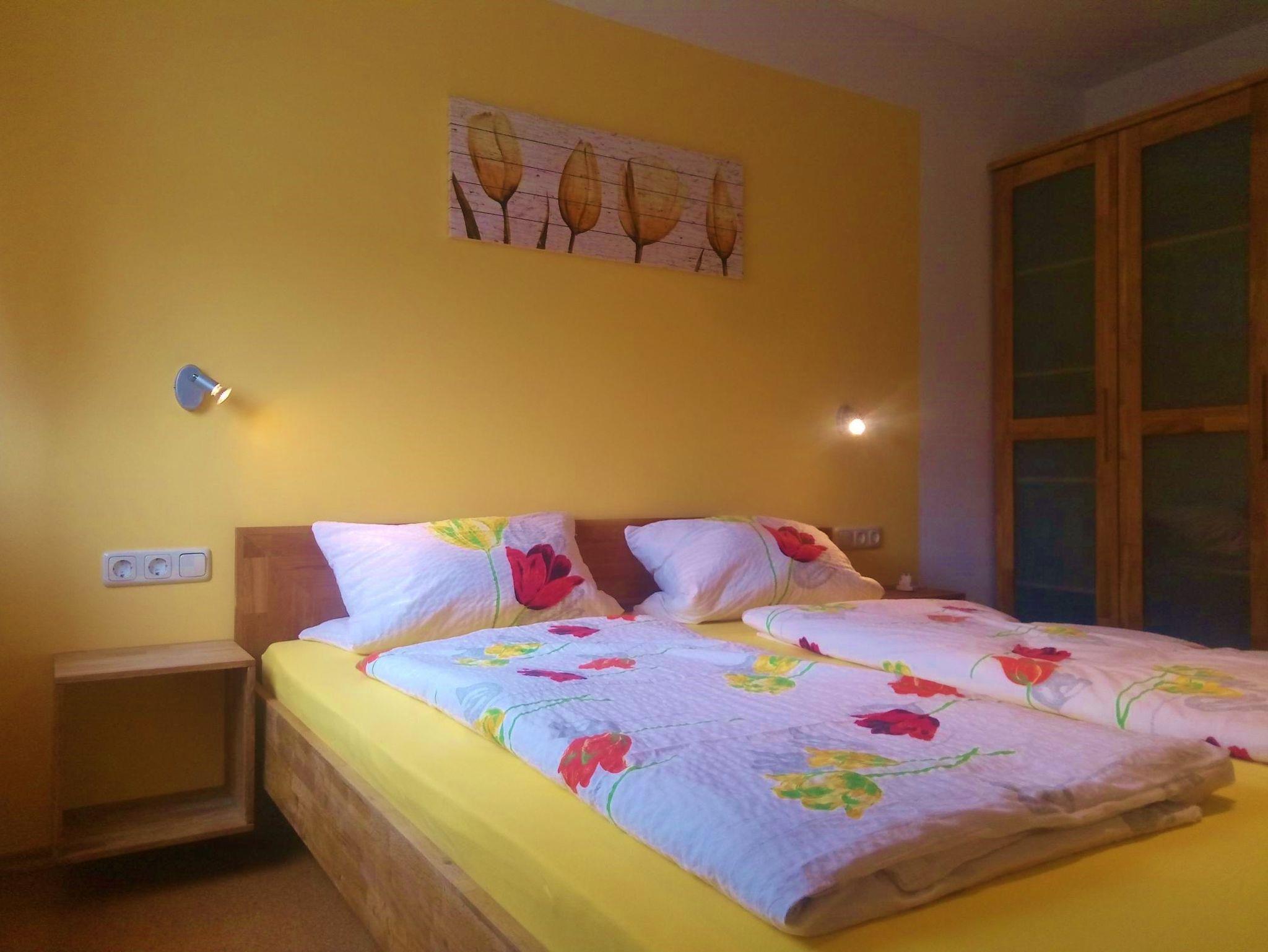 Die moderne Ferienwohnung 3 ist 65 qm groß und für 4 Personen ausgelegt. Die Ferienwohnung verfügt über Küche mit Wasserkocher, Mikrowelle, Kaffeemaschine, Teekocher, Toaster, Kühl-Gefrier-Kombination, Spülmaschine und Esstisch. Der Wohnbereich mit Couch und SAT-TV lädt zum Verweilen ein. Zum Schlafen gibt es zwei Schlafzimmer mit jeweils einem Doppelbett. Im zweiten Schlafzimmer steht zusätzlich ein Kinderbett. Das Badezimmer ist mit Dusche und WC ausgestattet. Auf dem schönen Balkon können Sie die Sonne genießen. Bettwäsche und Handtücher sind inklusive und auch Waschmaschine und Trockner sind vorhanden. Haustiere dürfen allerdings nicht mitgebracht werden.
