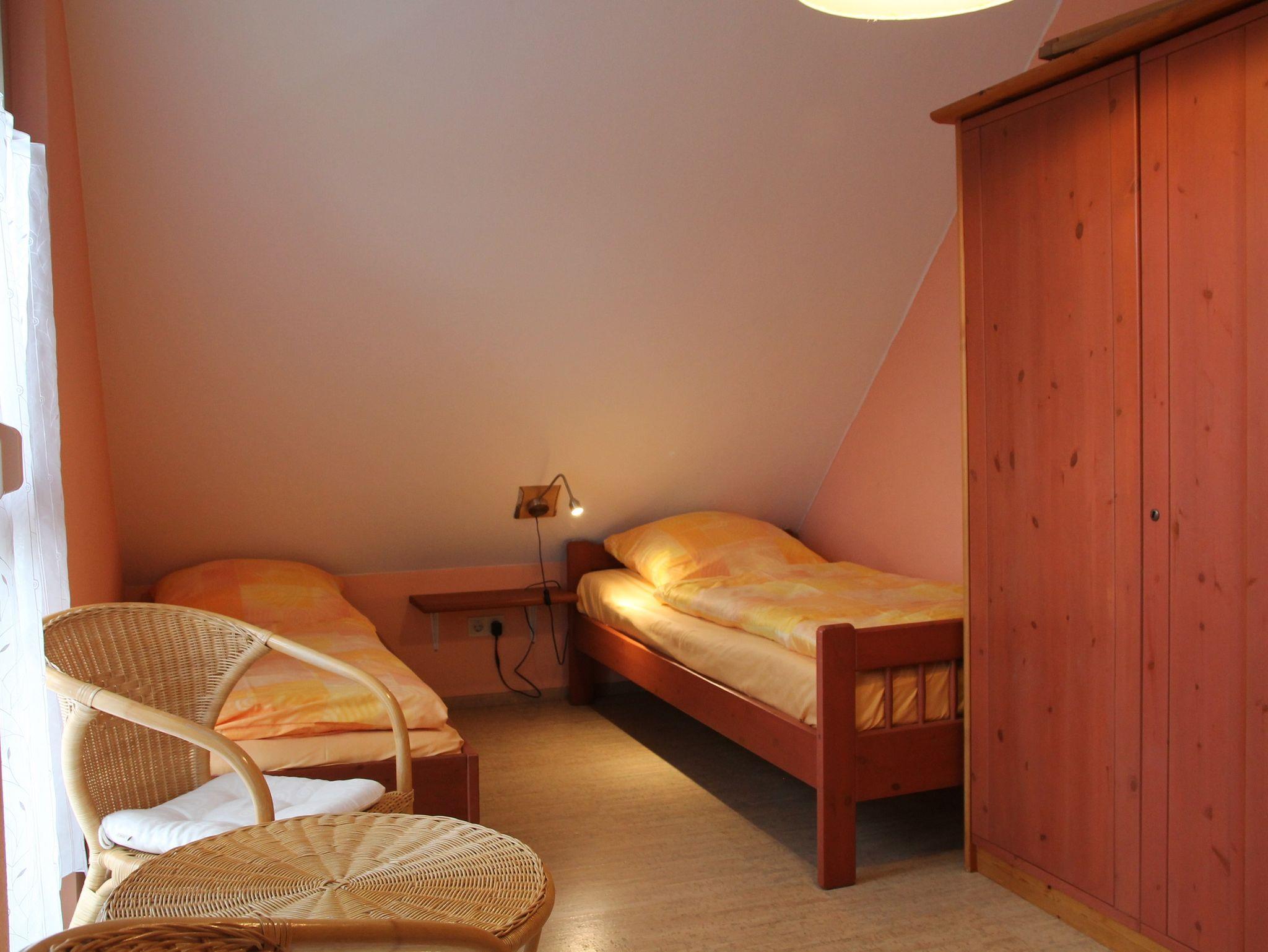 Im oberen Stockwerk befinden sich ein Elternschlafzimmer mit Doppelbett und Babybett und ein Kinderzimmer mit zwei Einzelbetten. Das Haus ist kindersicher Eingerichtet mit Steckdosen und Treppensicherung, Hochstuhl, Wickelauflage uvm. sind vorhanden