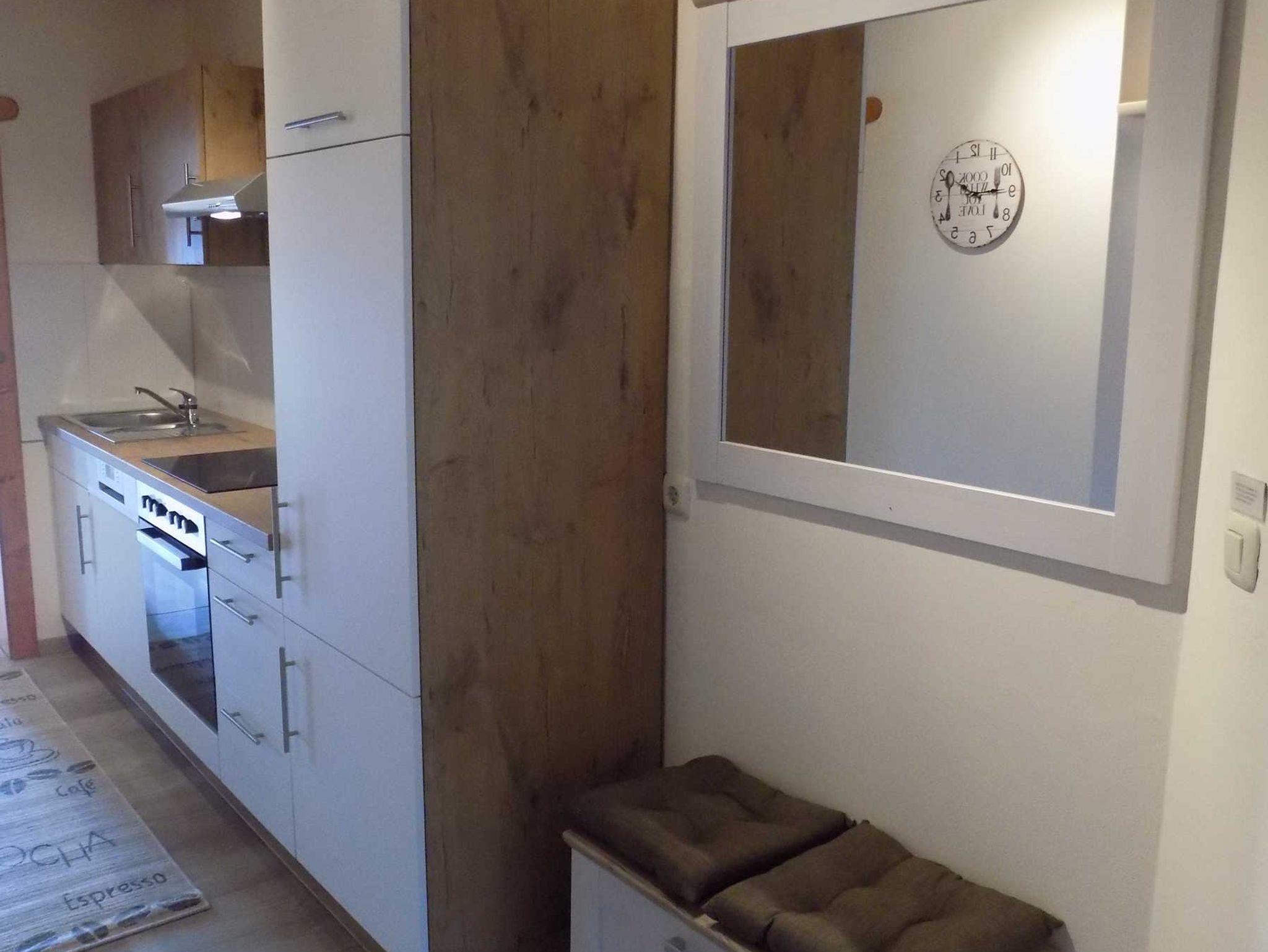 Küchenzeile mit Geschirrspüler und Tabs, Backofen und Mikrowelle,Toaster,Kaffeemaschine,Eierkocher,Wasserkocher.