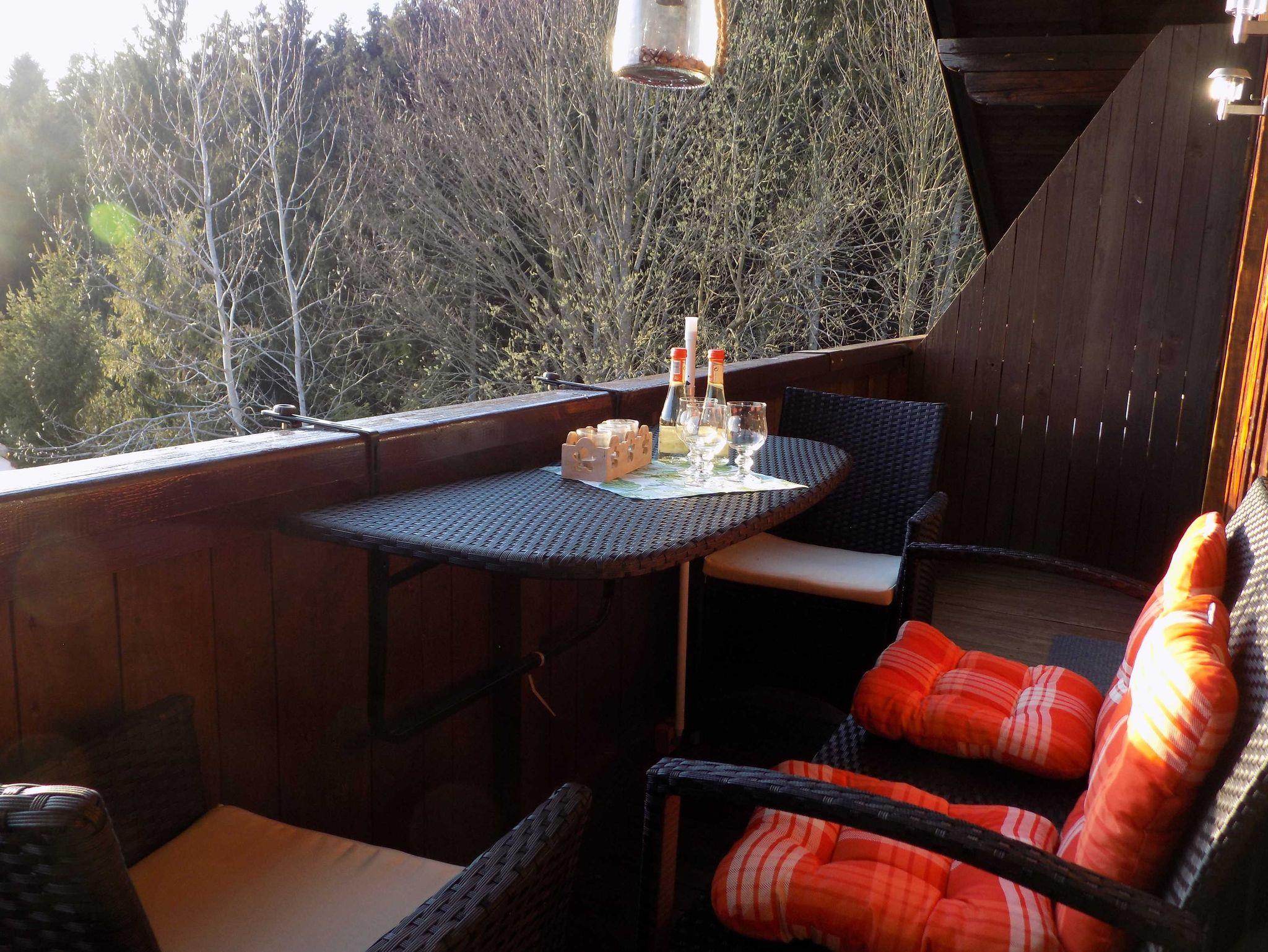 Balkon mit herrlicher Aussicht, an klaren Tagen bis zu den Alpen.Eigener Parkplatz vor der Ferienwohnung. Hallenbad,Außenpool, Sauna, Tischtennis und Spielplatz stehen unseren Gästen kostenlos zur Verfügung.