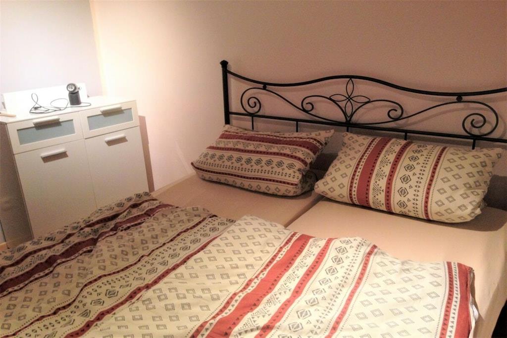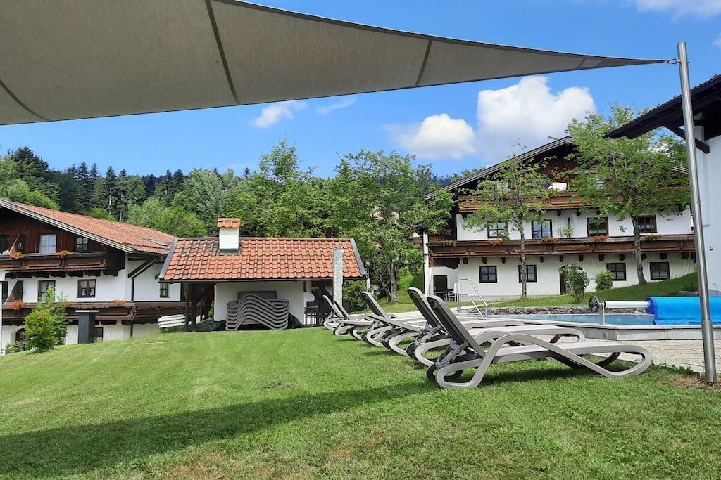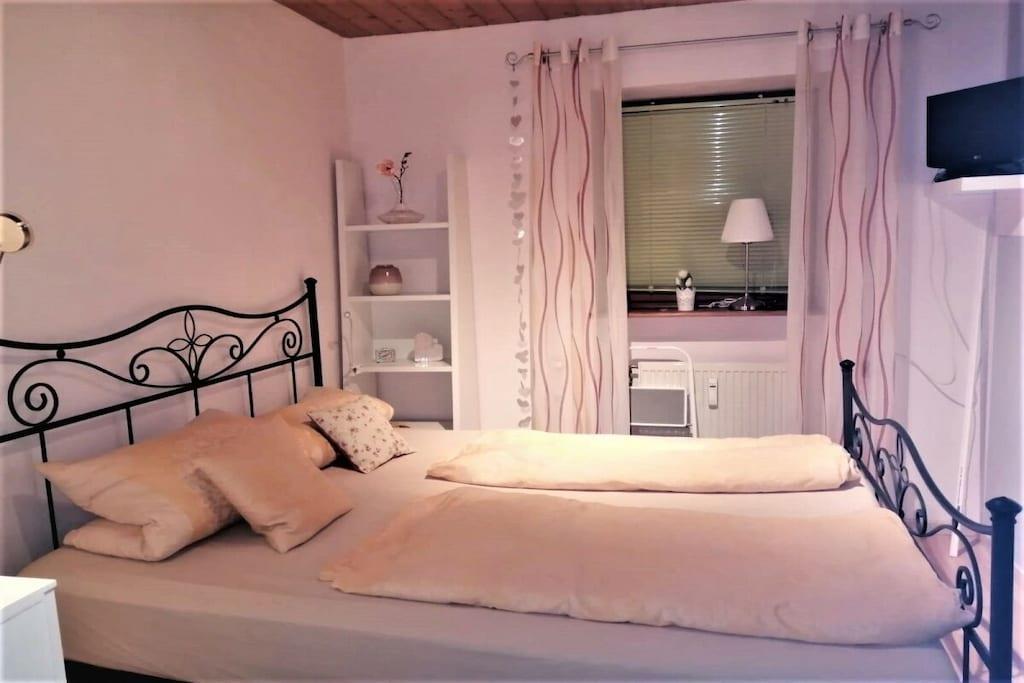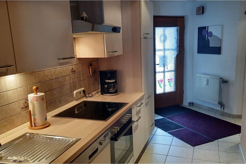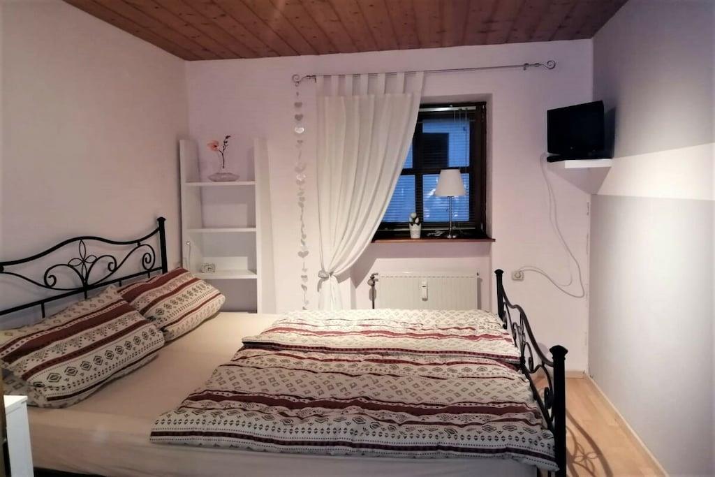 Die ebenerdige südlich gelegene komfortable Ferienwohnung mit traumhaftem Balkonblick auf Hauzenberg und Umgebung, mit hauseigenem Hallenbad, Sauna und Freibad lassen keine Wünsche übrig. Parkplatz vor dem Haus, Grillmöglichkeit, Spielplatz (ideal für Kinder) stehen zur Verfügung. Die Wohnung ist für 4 Personen mit vollwertigen Betten ausgestattet, für ein Kleinkind kann ein Kinderreisebett und Kinderstuhl bereitgestellt werden. Geräumiges Wohnzimmer mit Essbereich und Sitzecke, Doppelbett (Schrankbett), Fernseher, sowie WLAN, weiteres Schlafzimmer, für 2 Personen, eine moderne volleingerichtete Küche mit Geschirrspüler, Backofen, Kühlschrank mit separater Gefrierkombination und vielem mehr, modernes Bad mit Dusche und Toilette, Für 4 Pers. steht Bettwäsche z. Verfügung, ebenso sind pro/Pers. 2 Handtücher verfügbar (für Schwimmbad, Sauna u. Liege bitte eigene Handtücher mitbringen).