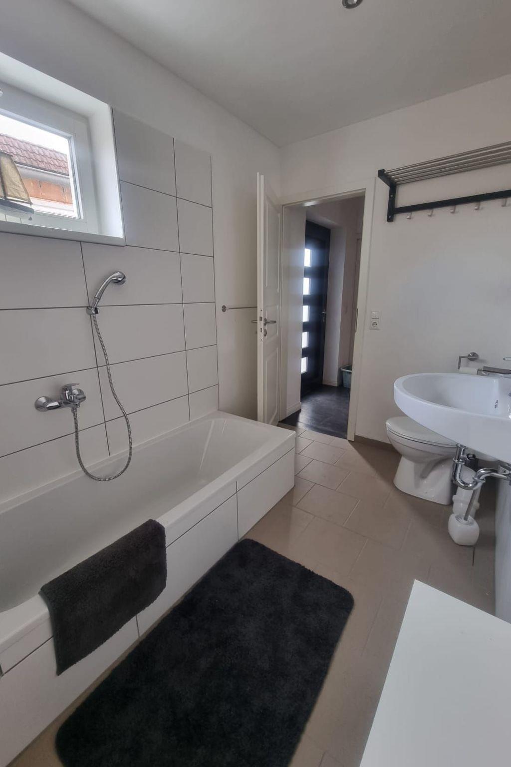 also available. There is a TV in the living room and in the lower bedroom. The modern bathroom has a bathtub for relaxation and a modern walk-in shower, as well as a hairdryer to make you feel at home.