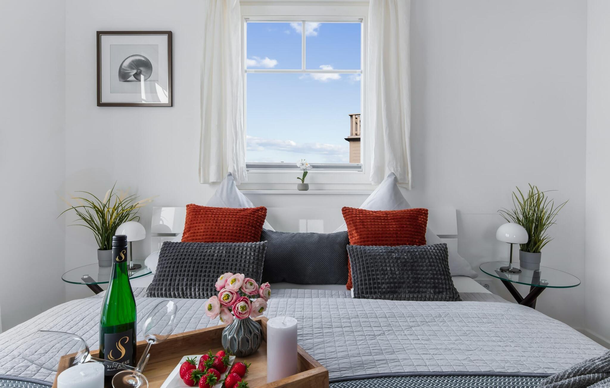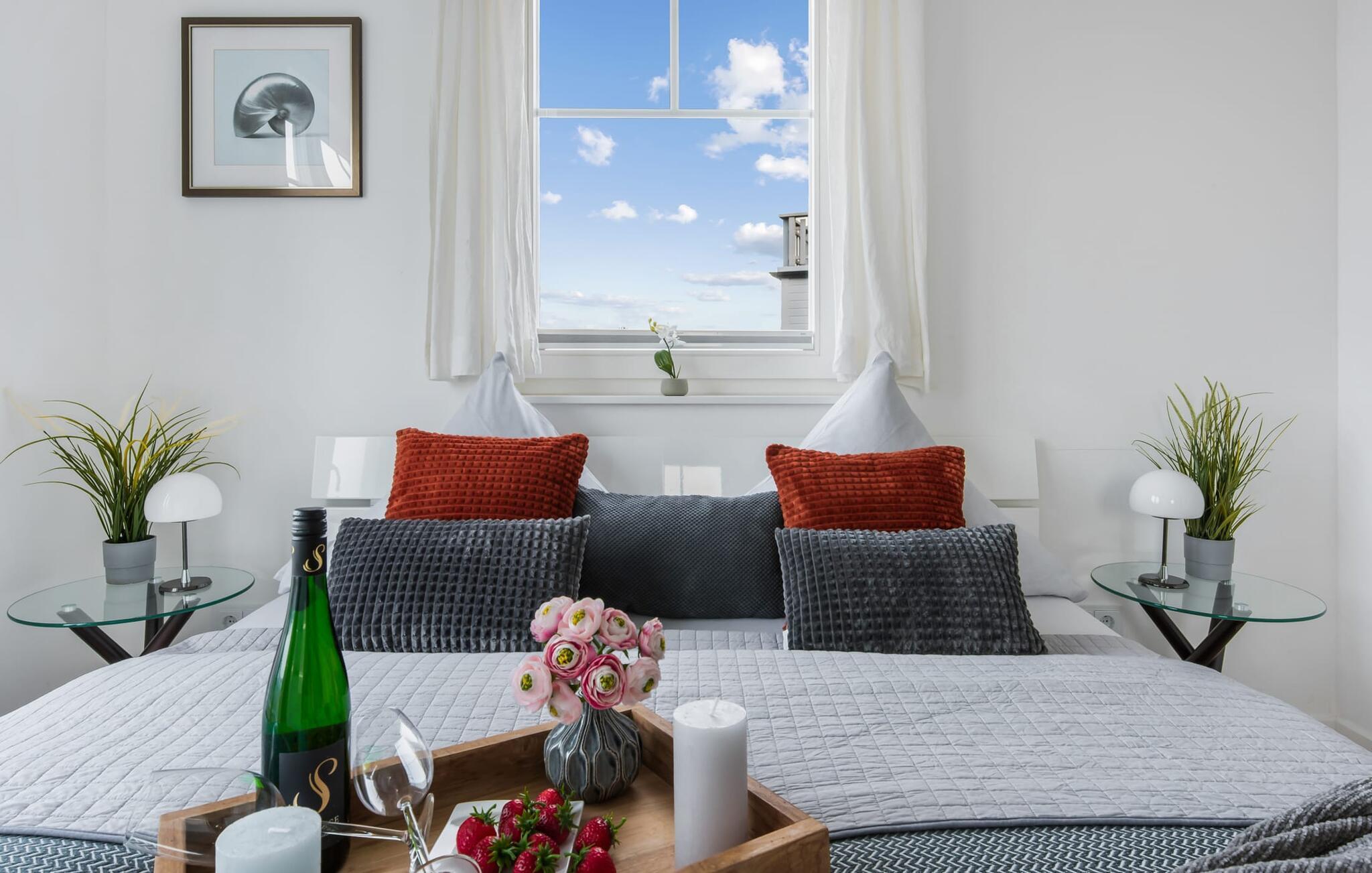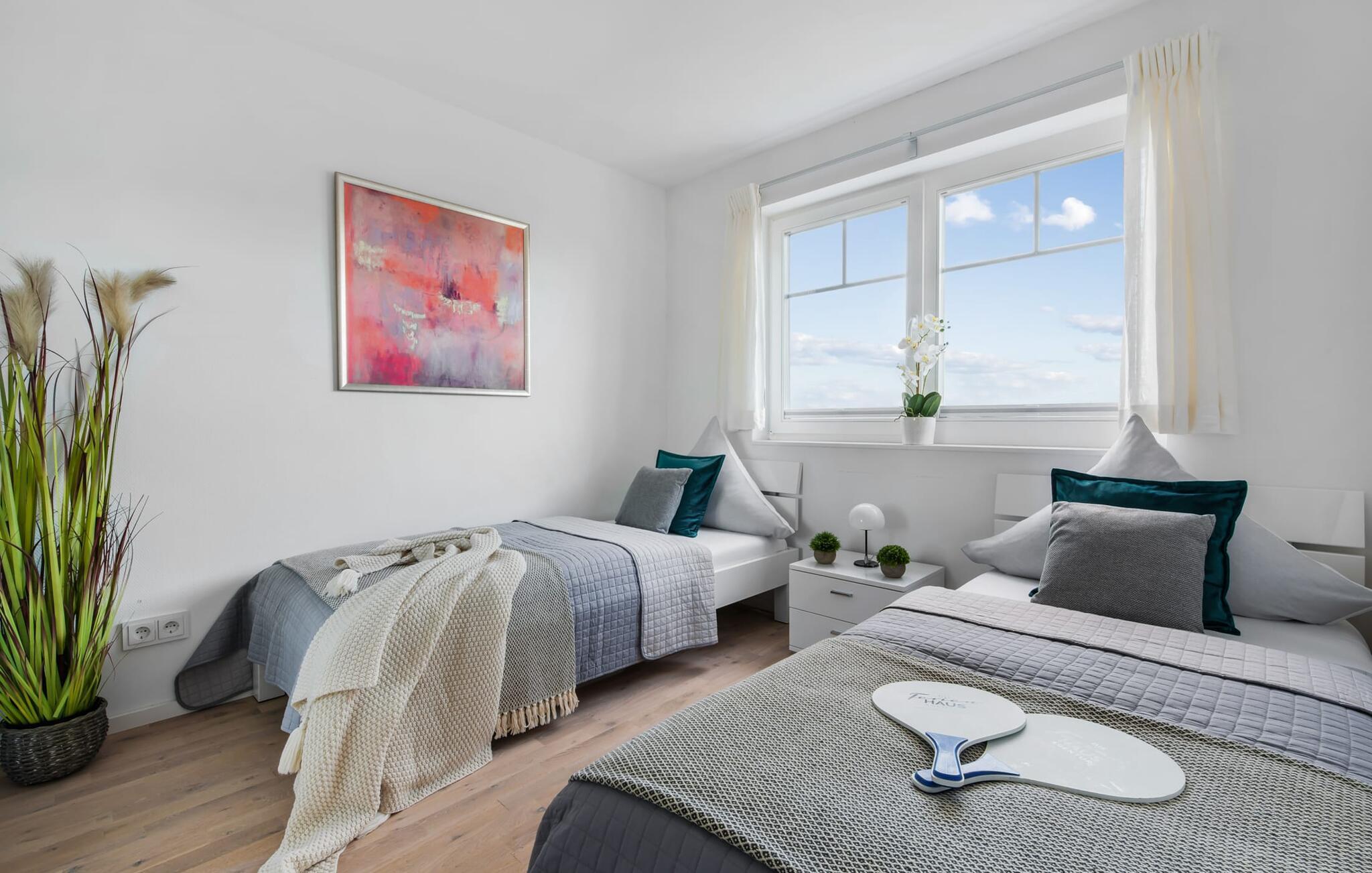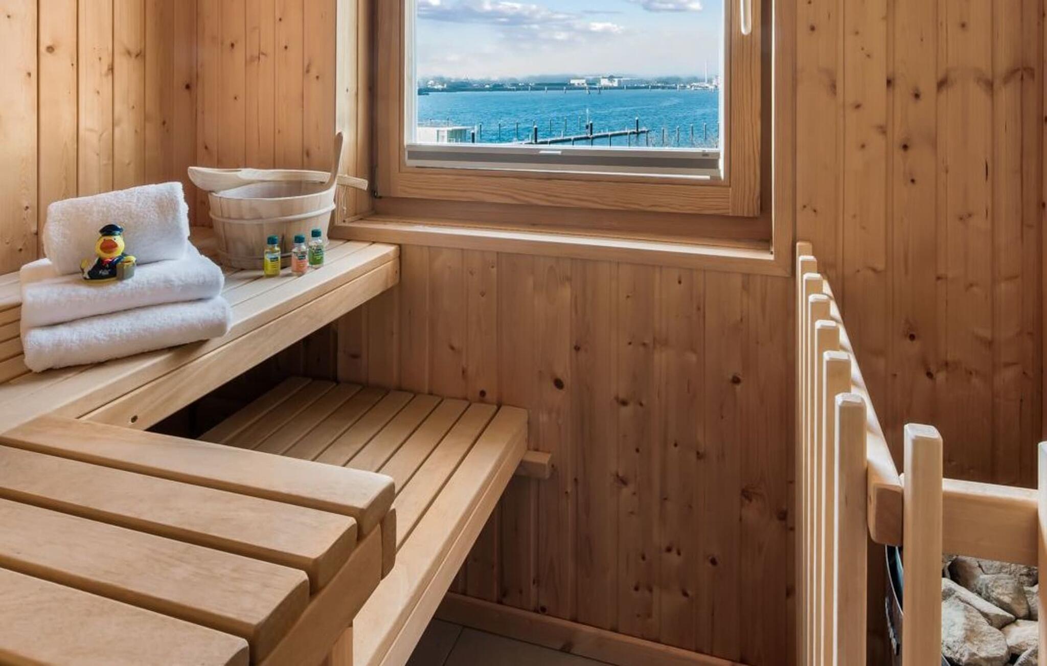 Strandvillaen HAVLYST er en moderne strandvilla, der vender mod vest og imponerer med sin nærhed til den hvide sandstrand i Østersøresortet Olpenitz. Den direkte adgang til stranden er på bagsiden af huset, hvilket betyder, at udsigten fra denne boligenhed er i den modsatte retning. Sommerhusets stue/spisestue er oversvømmet med lys. Vinduesfronten fra gulv til loft giver udsigt til den tilstødende sydvendte terrasse. Her kan I tilbringe selskabelige grillaftener eller romantiske middage i levende lys. Sejlskibe, der passerer i travlheden ved havneindløbet, måger, der flyver rundt og den karakteristiske Østersøbrise skaber en maritim atmosfære. De tre solterrasser garanterer en spændende havnebiograf og kan ses, mens man spiser sammen ved spisebordet eller fra det komfortable siddeområde. Den moderne indretning udstråler komfort, og det veludstyrede tekøkken glæder ethvert hjerte. Det fuldt udstyrede køkken-alrum lader intet tilbage at ønske at tilberede et måltid her og derefter spise det enten ved spisebordet eller på terrassen. På første sal byder det store soveværelse på en komfortabel dobbeltseng og en lille balkon. Det andet soveværelse er indrettet med to enkeltsenge. Her finder I også et rummeligt badeværelse. Med sauna og hjørnespabad giver dette jer de bedste betingelser for en afslappet ferieoplevelse. Når I ankommer på anden sal, bydes I velkommen af relaxafdelingen med gulv til loft vinduer og stor tagterrasse. De komfortable lænestole kan om nødvendigt omdannes til to ekstra sovepladser. Og hvis vejret ikke er helt så venligt, vil pejsen fremtrylle en hyggelig atmosfære med sin brølende ild. Den in-house store finske sauna med udsigt over havnen er også tilgængelig for det beroligende spa-program. Den tilstødende bruser sørger for den nødvendige køling. Gæstetoilettet i stueetagen og parkeringspladsen direkte ved huset byder på yderligere bekvemmelighed. Vores yndlingssted: sæt fødderne op på tagterrassen foran studiet med en bog i hånden og slap af og nyd solnedgangen med udsigt over havnen, stranden og Østersøen... Bemærk venligst: OstseeResort Olpenitz er meget populært, og der bygges fortsat i parken. Ikke desto mindre kan I se frem til en 5-stjernet standard og et førsteklasses ophold. Byggeaktiviteterne kommer ikke til at forstyrre jer på ferien, og derfor gives der ikke yderligere afslag i prisen.