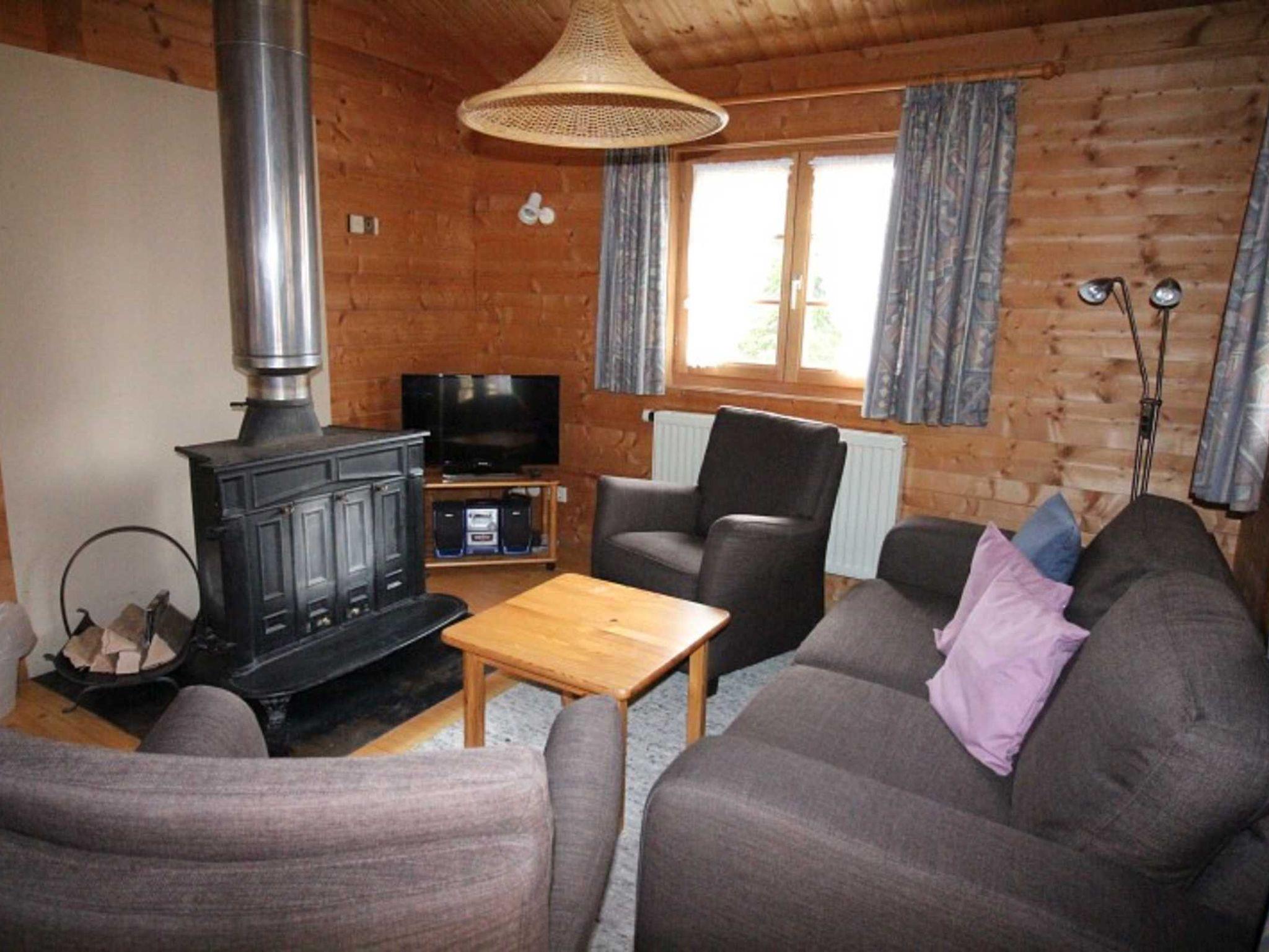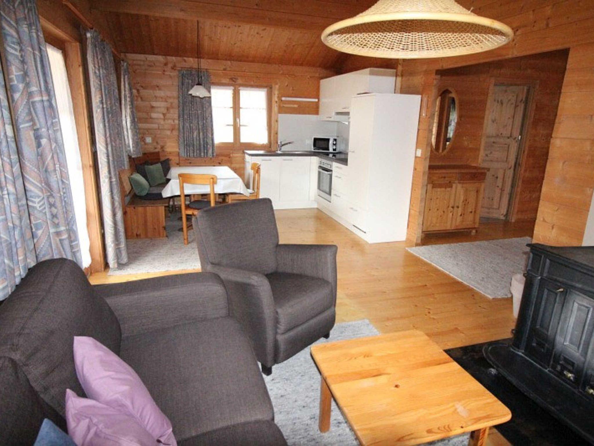 Schlafzimmer mit Doppelbett, Wohnraum mit Kaminofen, separater Essplatz, voll ausgestatteter