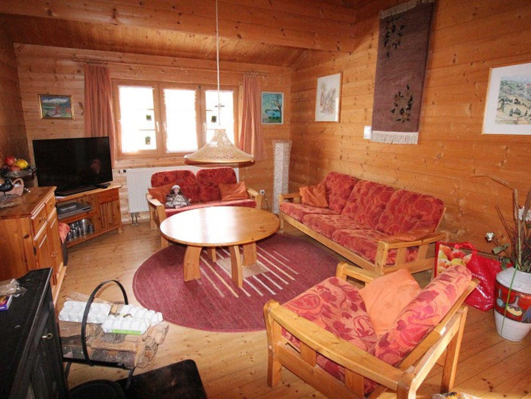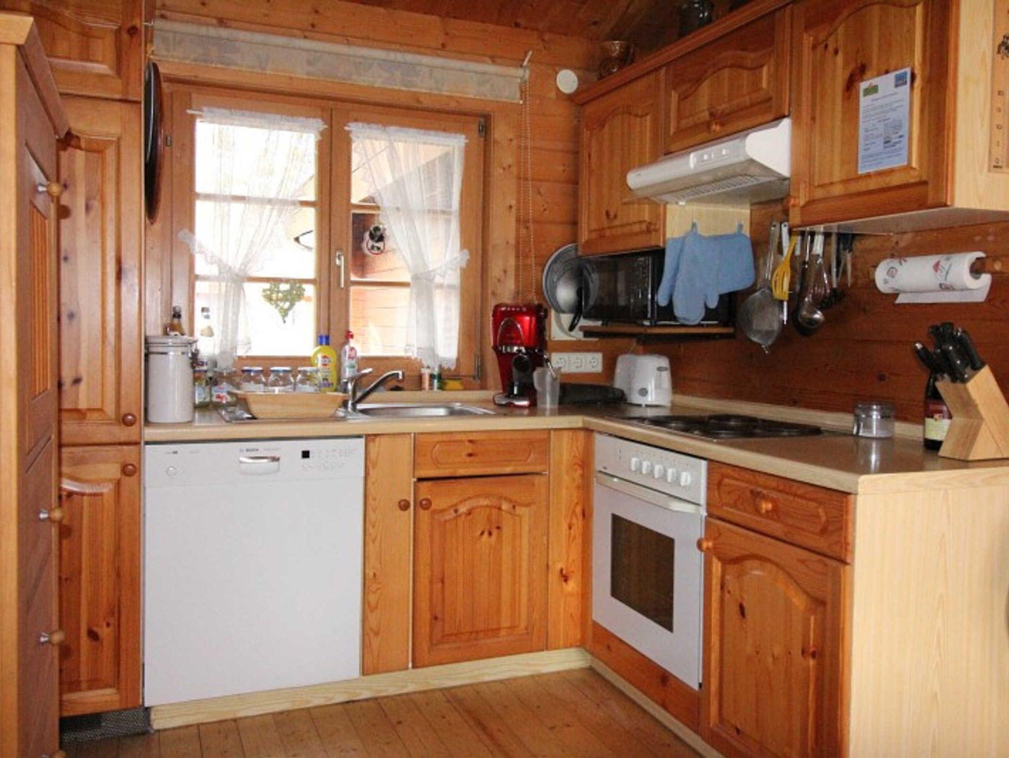 mit Doppelbett oder Etagenbett, Wohnraum mit Kaminofen, separater Essplatz, voll ausgestatteter