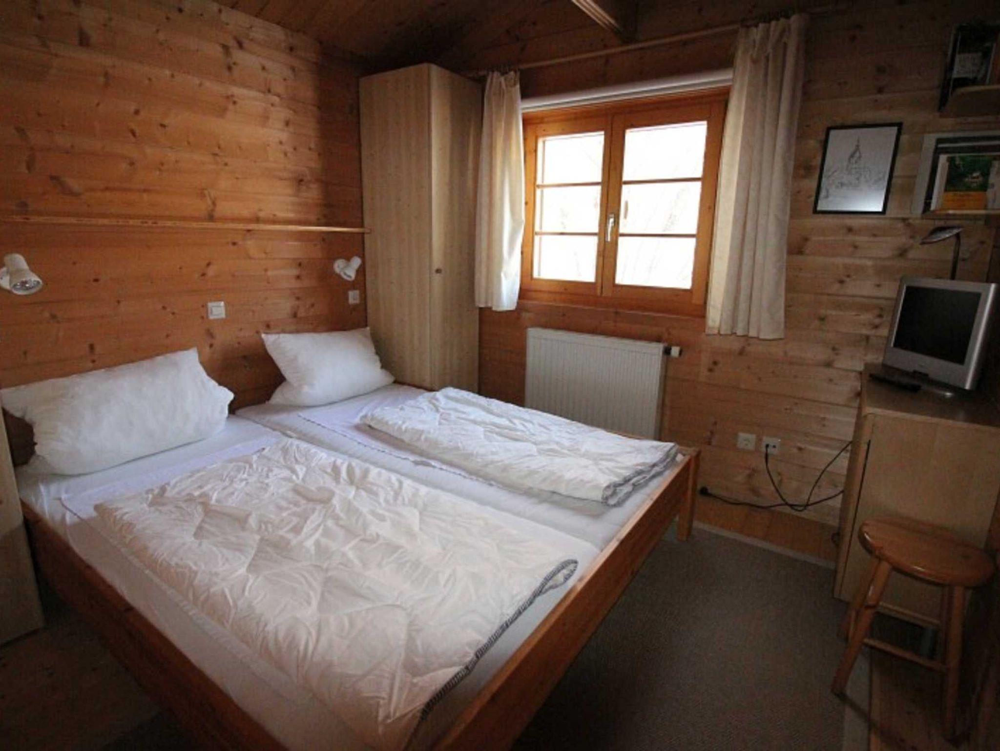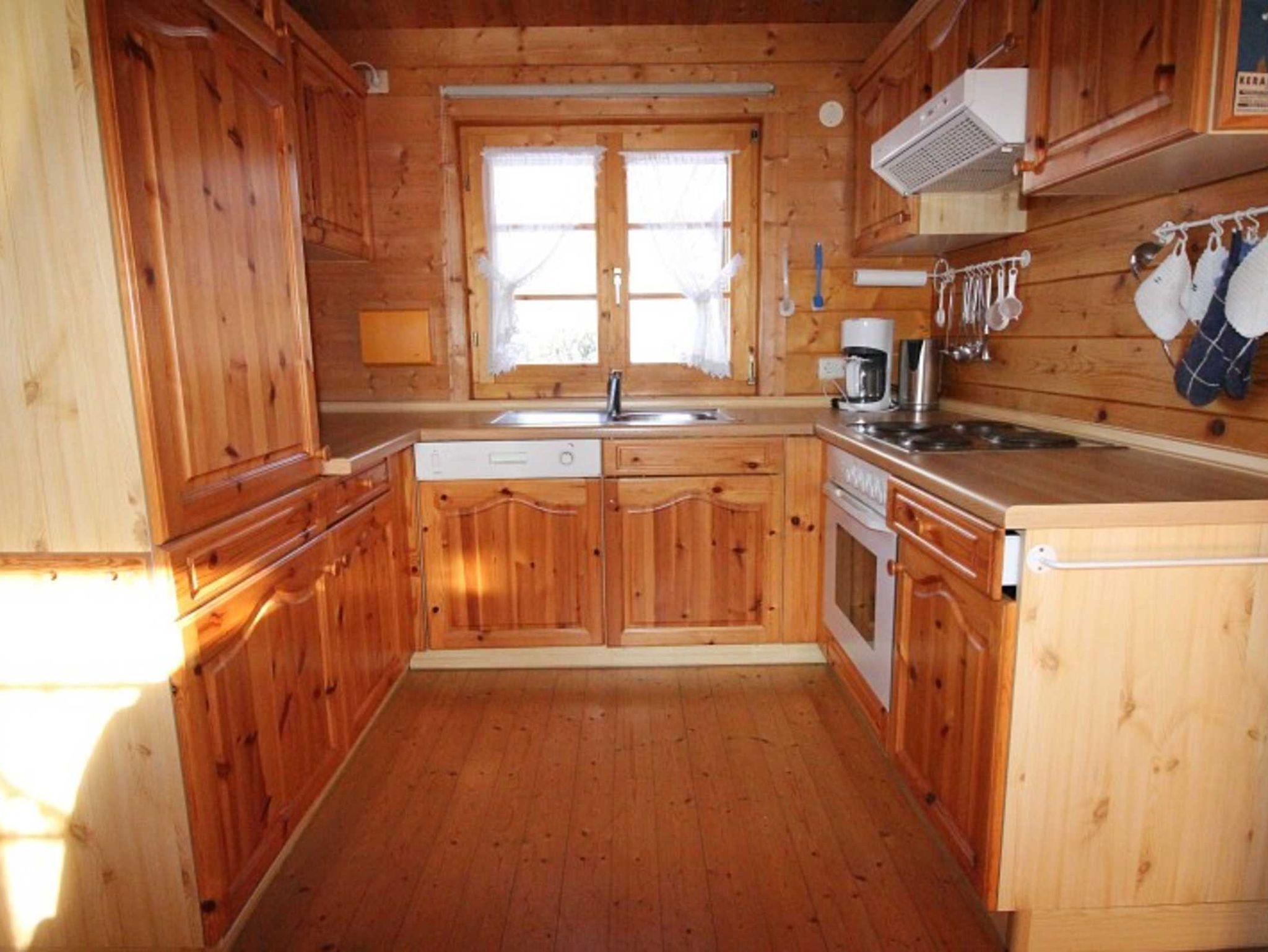 Doppelbetten, Wohnraum mit Kaminofen, separater Essplatz, voll ausgestatteter Küchenbereich mit