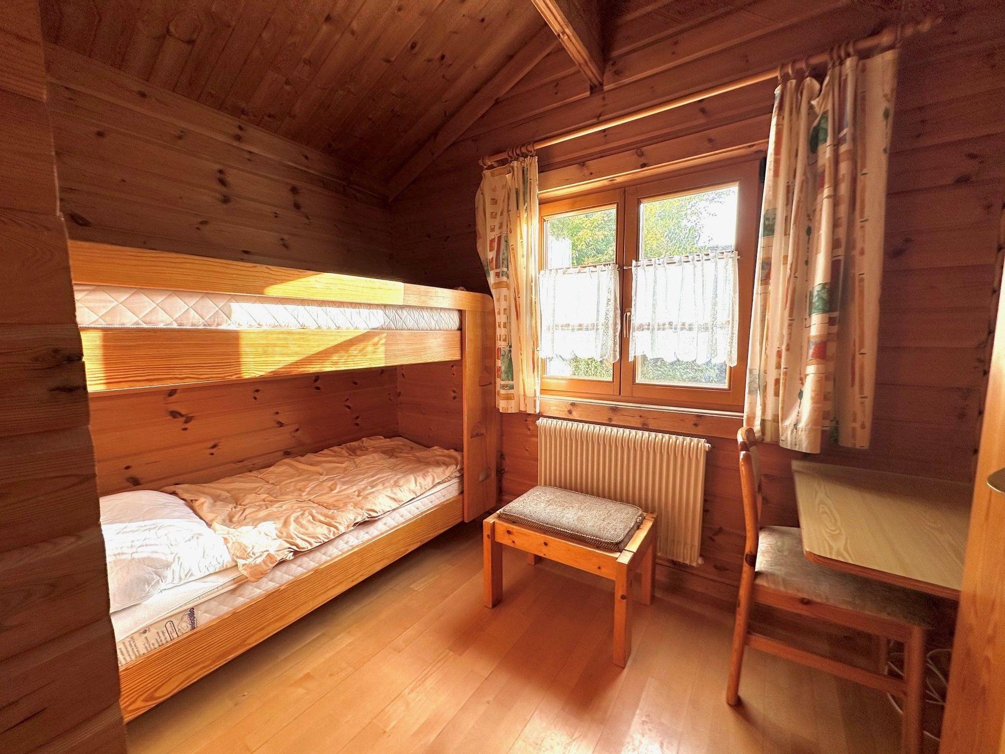 ein Schlafzimmer mit einem Etagenbett, bestehend aus zwei Betten (je 200 cm x 100 cm)