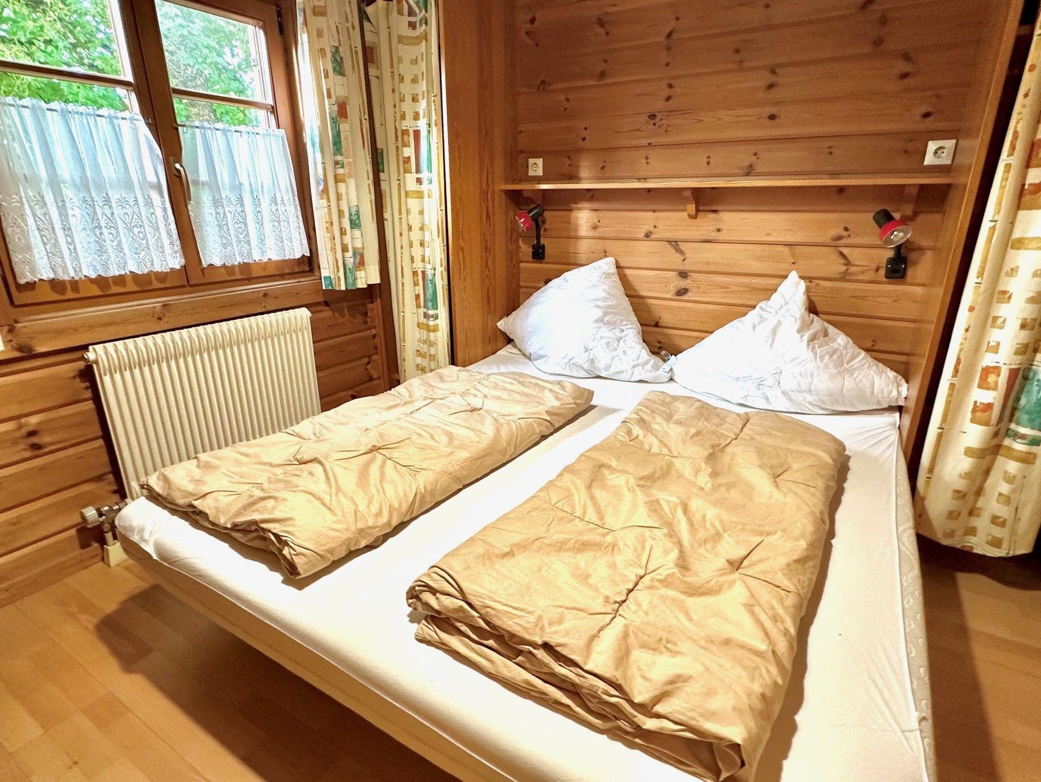 ein Schlafzimmer mit Doppelbett (200 cm x 200 cm),