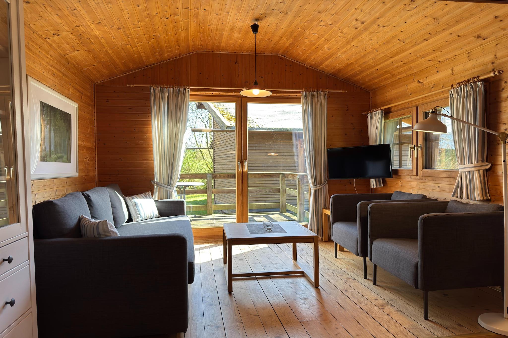 Blokhytte: (åbent køkken(kogeplade(Komfur med fire kogeplader, gas), elkedel, brødrister, kaffemaskine, mikrobølgeovn, køleskab), Stue/soveværelse(enkeltsovesofa, Fjernsyn, radio), soveværelse(dobbeltseng(140 x 200 cm)), soveværelse(køjeseng eller 2 enkeltsenge), badeværelse(bruser, håndvask, toilet)) tørretumbler(deles med andre gæster, betalt), sauna(paid), vaskemaskine(deles med andre gæster, betalt), terrasse, havemøbler, parkering, barnestol, baby crib(paid), Vaskeripakke mod et gebyr