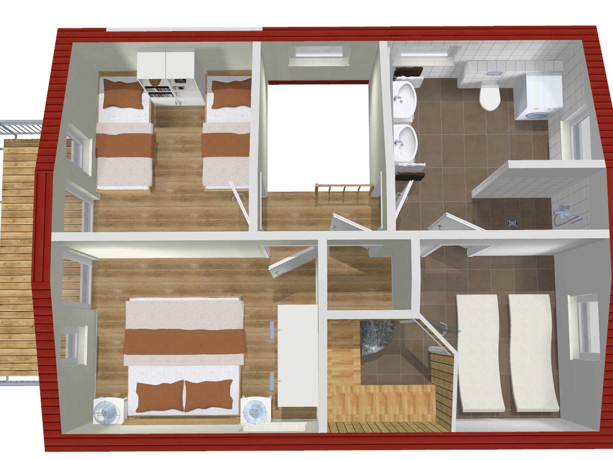 Ihr Ferienhaus liegt zwischen viel Grün und kleinen Teichen in einer parkartigen Landschaft. Die Ferienhäuser gibt es in unterschiedlichen Größen und mit unterschiedlicher Ausstattung: von der einfachen Unterkunft im Chaletstil bis zum großen, rustikalen Blockhaus. Je nach Typ sind sie zwischen 35 qm und 70 qm groß und verfügen über bis zu drei Schlafzimmer für bis zu acht Personen.