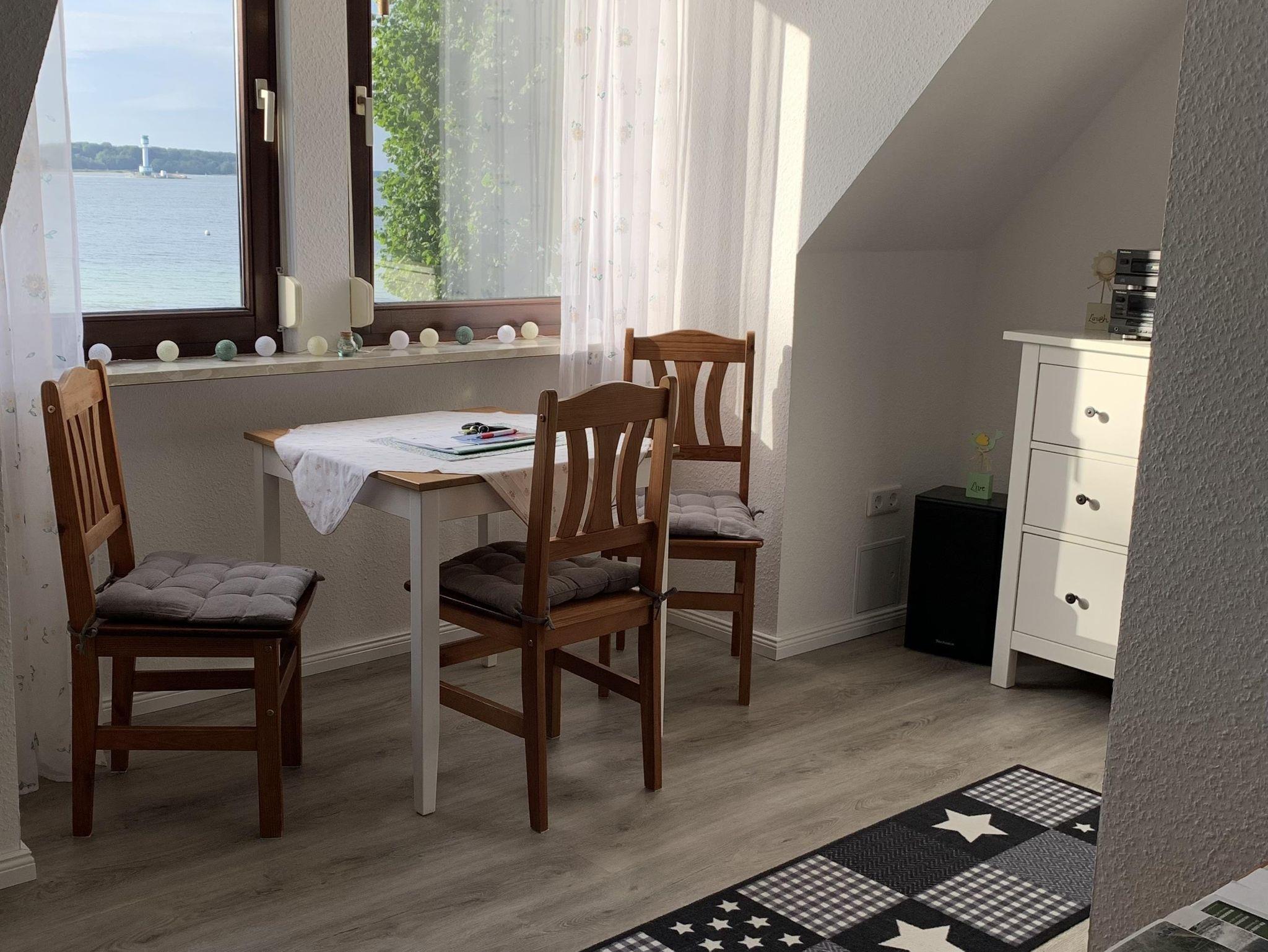Die Ferienwohnung befindet sich in der oberen Etage eines Einfamilienhauses in unmittelbarer Nähe zum Strand, direkt an der Strandpromenade. Es handelt sich um eine Nichtraucherwohnung mit einer Gesamtfläche von ca. 50 m². Sie verfügt über eine hochwertige, neue Einbauküche mit Essbereich. Die Einbauküche ist mit Kochutensilien sowie Backofen, Kaffeemaschine, Wasserkocher und Toaster komplett ausgestattet. In dem großen kombinierten Wohn- und Schlafraum stehen u. a. ein Doppelbett und ein Bauernschrank für Ihre Kleidung. In dem Wohnbereich finden Sie ein gemütliches Sofa mit Couchtisch vor. Die gesamte Wohnung wurde in dem Jahre 2021 von Grund auf renoviert, so auch das kleine Badezimmer mit Badewanne. Die Wohnung wurde mit einem ansprechenden Vinyl-Fußboden ausgelegt und mit viel Liebe hergerichtet. Es erwartet Sie ein traumhafter Ausblick auf die Kieler Förde aus den Fenstern der Küche, des Essbereiches sowie auch aus dem Wohn- und Schlafbereich.