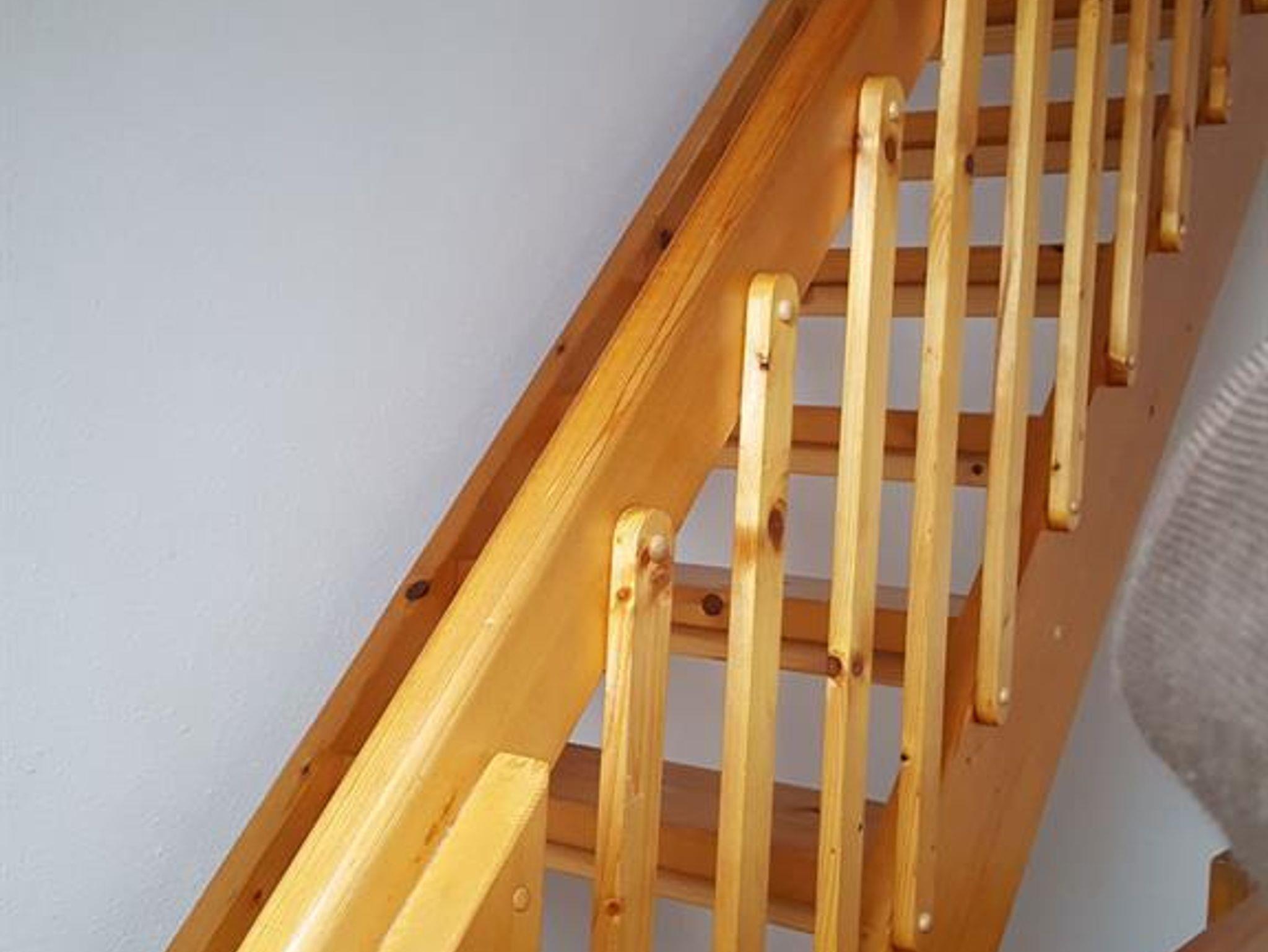 Den kleinen Schlafraum im Dachgeschoss erreichen Sie wiederum über eine steile Holztreppe aus dem Wohnraum. Der Schlafraum verfügt über ein gemütliches Bett (140 x 200).