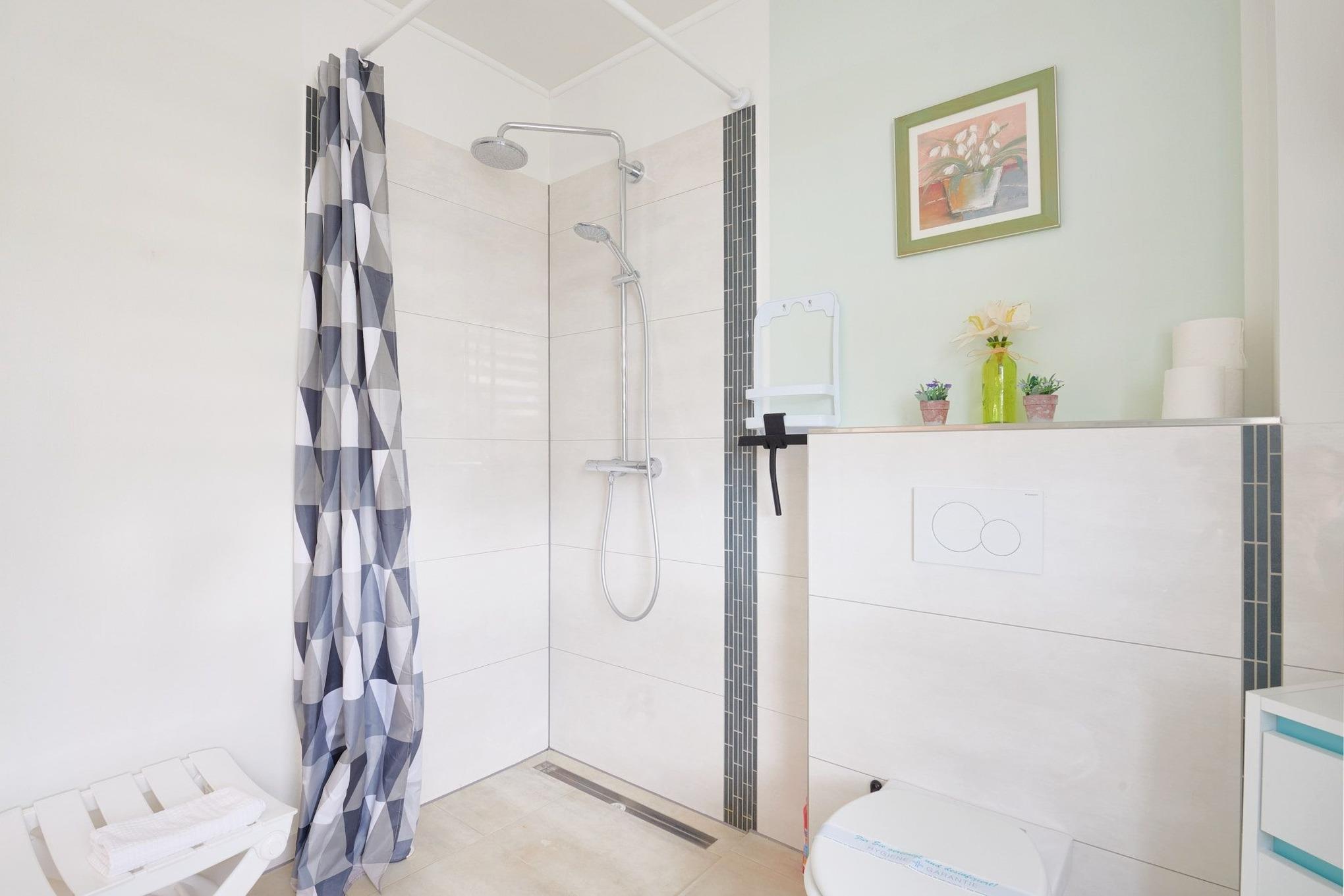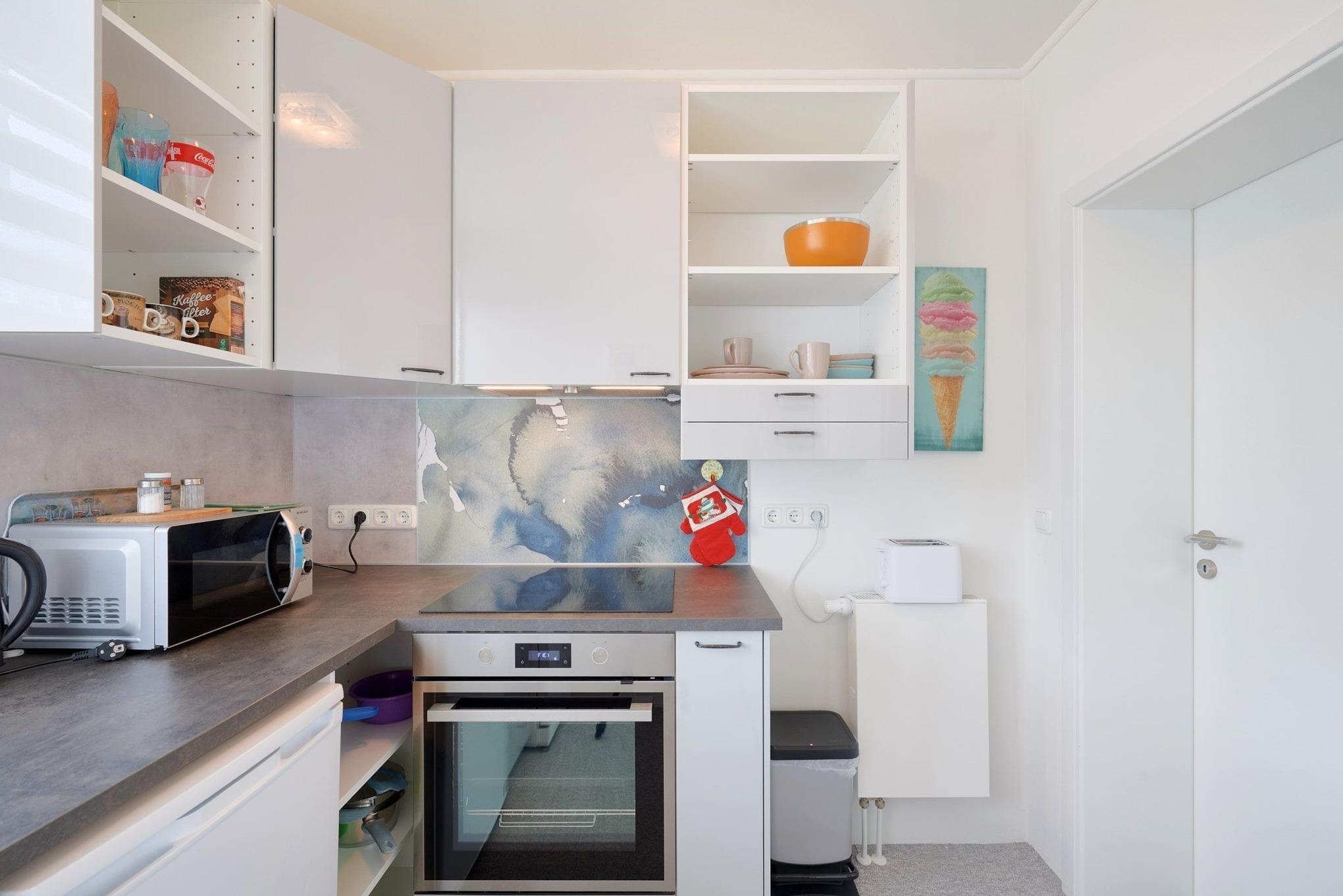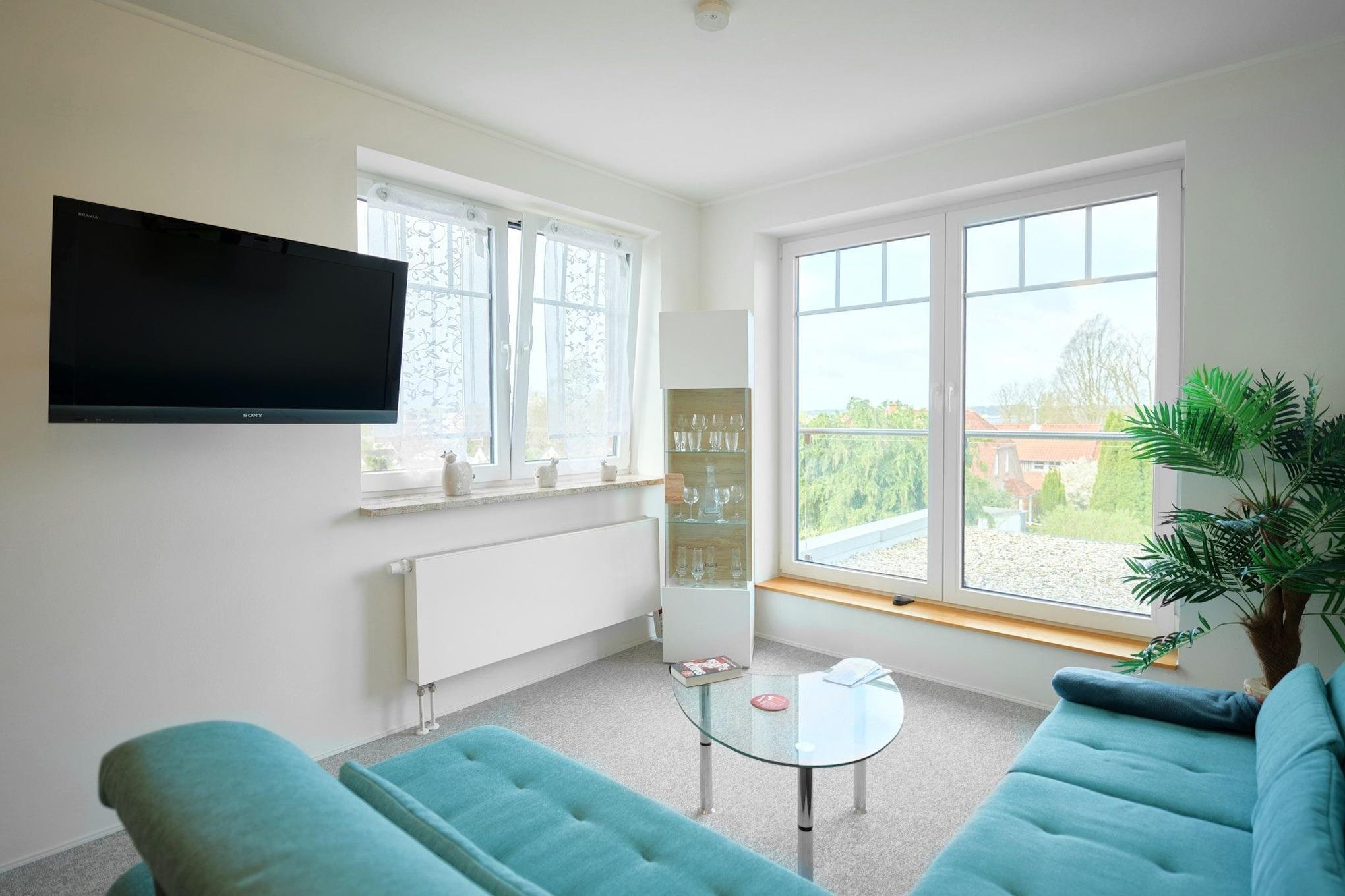 Mittelpunkt der liebevoll eingerichteten Wohnung ist das Wohnzimmer mit seiner schönen Fensterfront in Richtung Kieler Förde. Das Sofa sowie die nette Essecke laden zum Verweilen ein. Die separate Küche ist gut ausgestattet und macht eine Selbstverpflegung angenehm. Das Schlafzimmer verfügt über ein Boxspringbett (180x200 cm) und einen Kleiderschrank. Auch das Bad ist modern eingerichtet und punktet mit einer ebenerdigen Dusche. Eine gemütlich möblierte Terrasse befindet sich direkt vor dem Haus, hier können Sie das schöne Wetter und die gute Seeluft genießen.