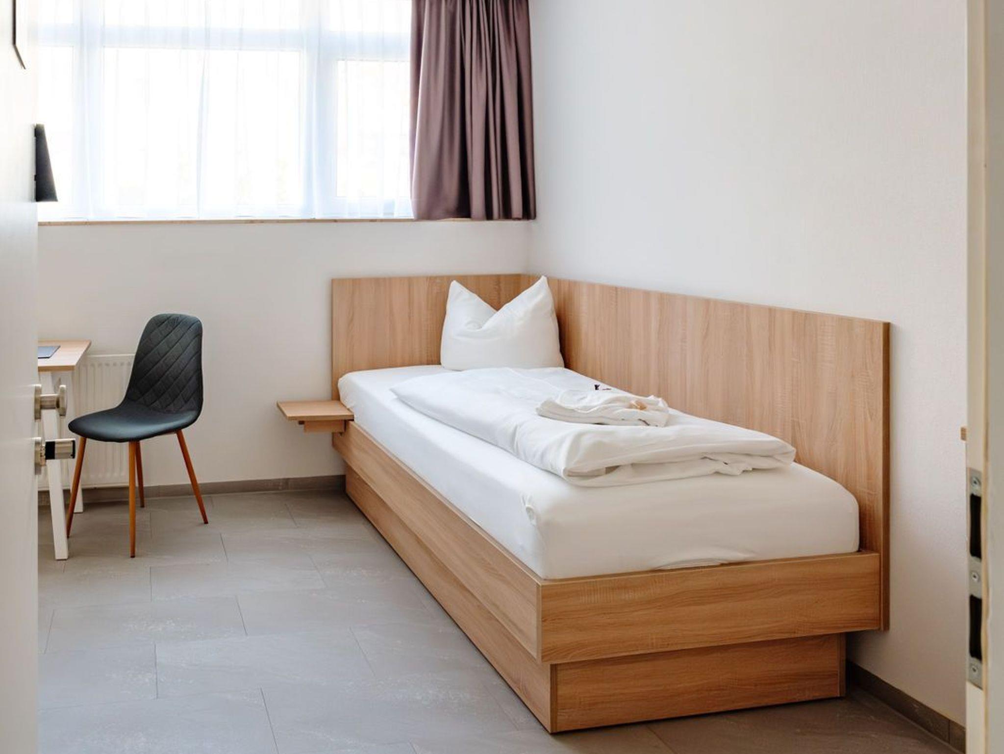 Unser Einzelzimmer (11 qm) eignet sich für 1 Person. Es verfügt über einen kleinen Essbereich und einem Einzelbett (1,00x2,00m).