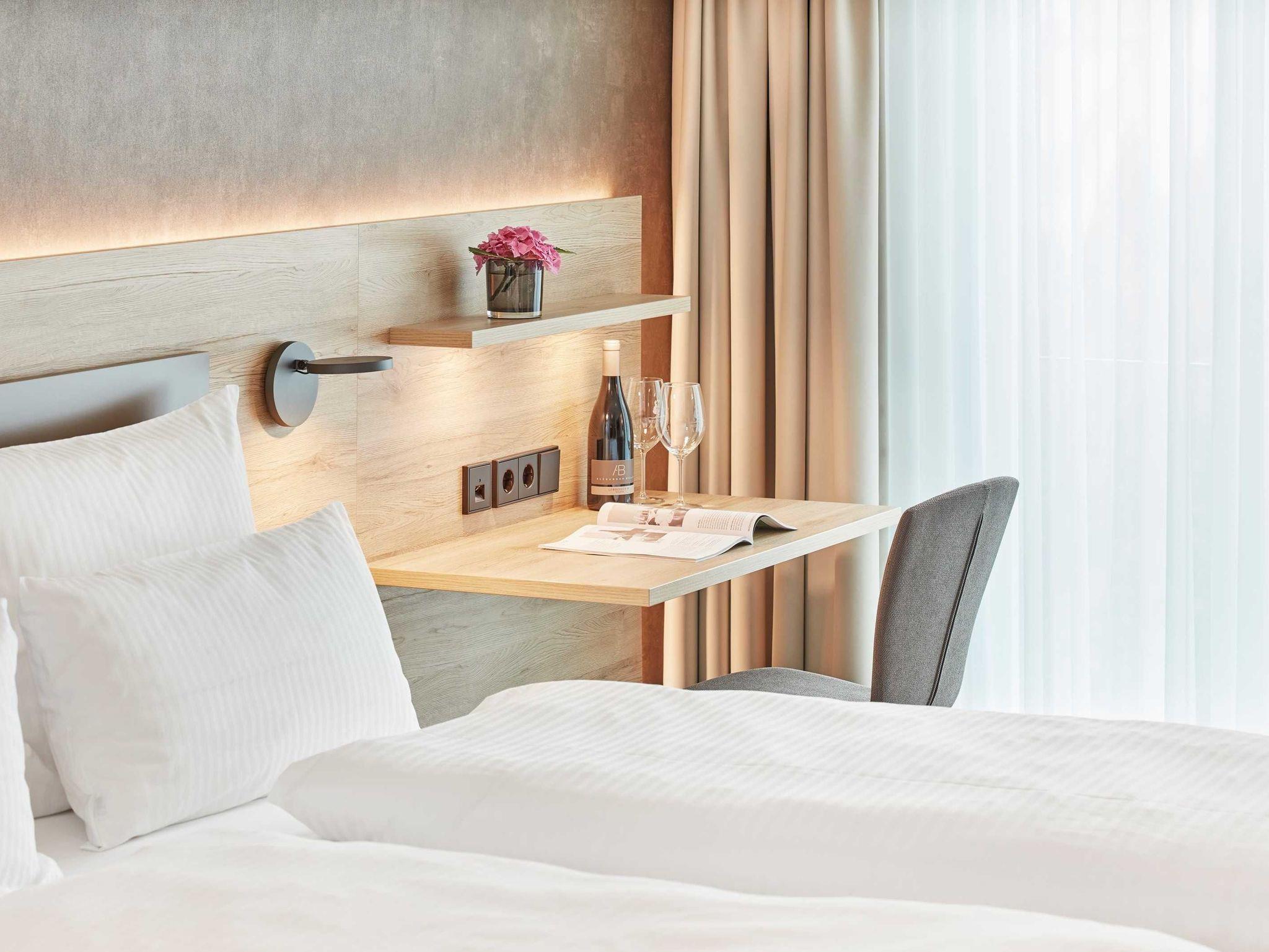 Die großzügigen, modern eingerichteten Gästezimmer sind mit einem geräumigen Bad ausgestattet. Es gibt insgesamt 16 Doppelzimmer (Einzelbelegung möglich), von denen die Hälfte als Dreibettzimmer buchbar sind.