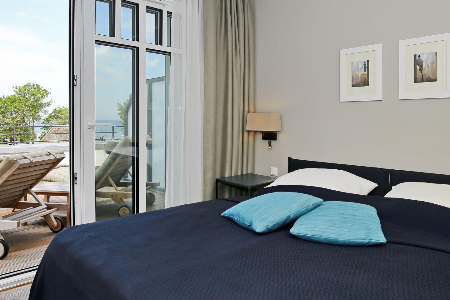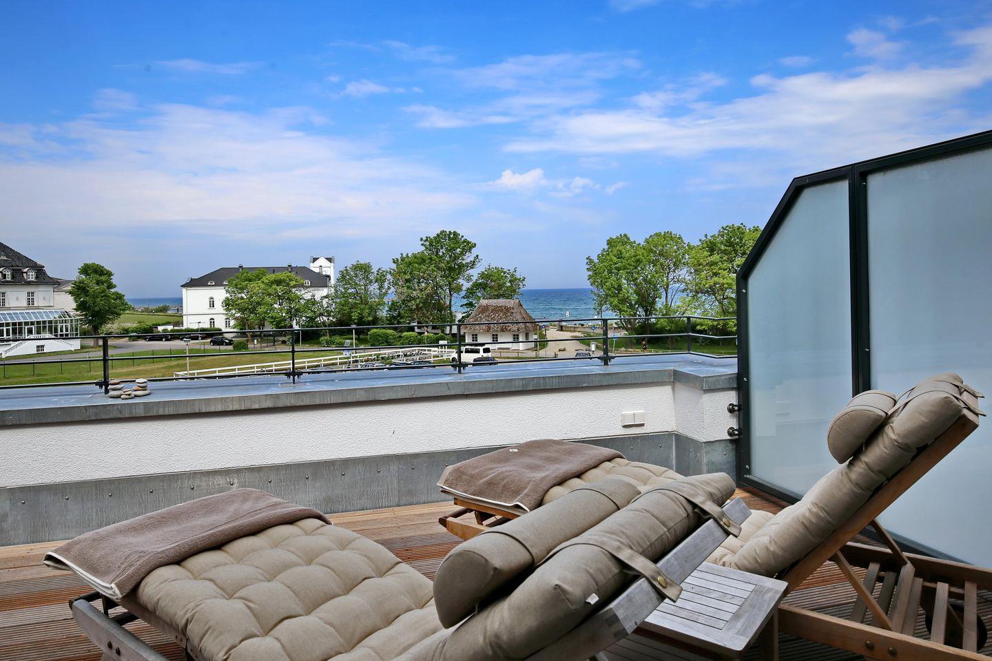 Die Ferienwohnung 34 im Linden-Palais in Heiligendamm ist eine exklusive 73 m² große 2-Zimmer-Wohnung für bis zu 2 Personen inklusive einer 34 m² großen Dachterrasse mit Seeblick. Zum Haus gehören zwei Fahrstühle.
