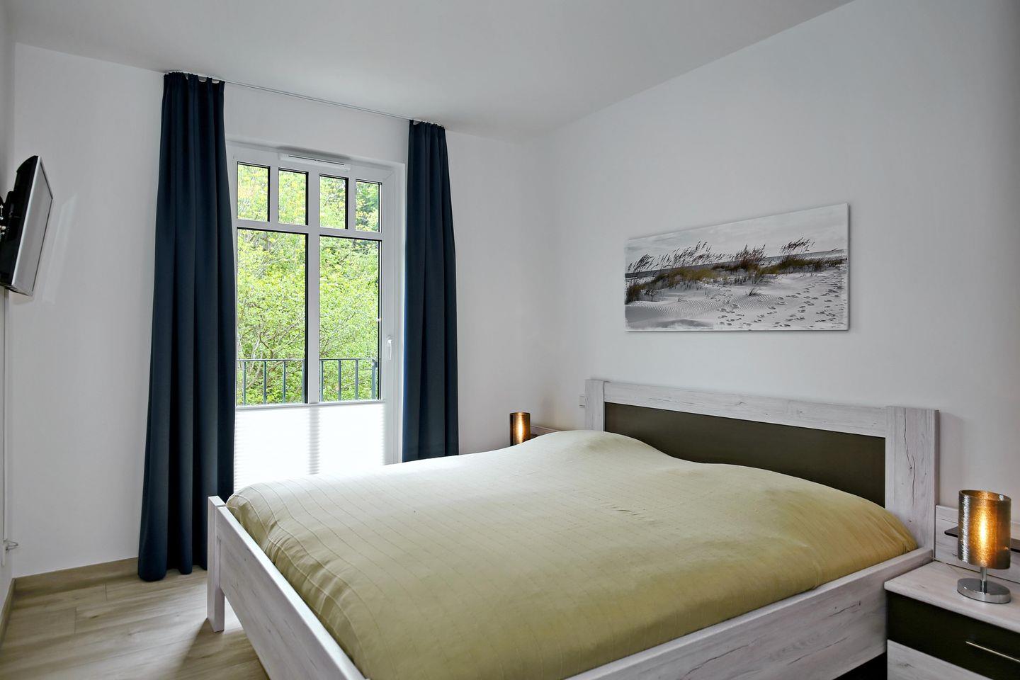 Die 42 m² große 2-Zimmer-Ferienwohnung für bis zu 4 Personen befindet sich in der ersten Etage des Linden-Palais. Die Wohnung gliedert sich in einen kombinierten Wohn– und Essbereich, eine Küchenzeile sowie ein Schlafzimmer und ein Duschbad. Auf dem Balkon mit Süd-Ost-Ausrichtung können Sie die Sonnenstunden des Tages genießen. Zusammen mit dem nur 50 Meter entfernten Strand sind Ihnen erholsame Urlaubstage an der Ostsee garantiert.