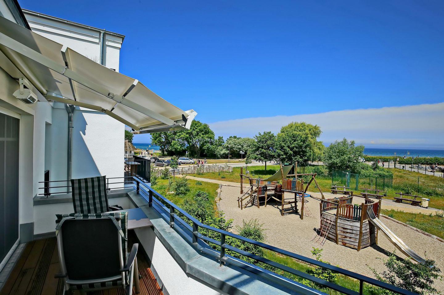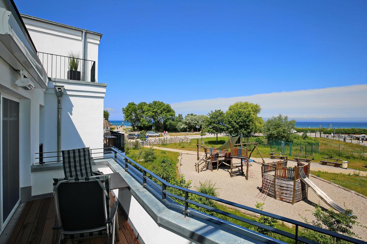 Die exklusive 2-Zimmer-Ferienwohnung für bis zu 2 Personen und einem Kleinkind (Babybett auf Anfrage) befindet sich in der ersten Etage des Linden-Palais. Der Balkon mit Markise und Heizstrahler lädt Sie mit einem wunderschönen Seeblick zu geruhsamen Stunden an der frischen Ostseeluft ein. Die Wohnung bietet Ihnen auf 48 m² einen Wohnbereich mit integriertem Essbereich, eine Küchenzeile, ein Duschbad sowie ein Schlafzimmer. In Verbindung mit dem nur ca. 50 Meter entfernten Strand sind Ihnen erholsame Urlaubstage an der Ostsee garantiert. Fühlen Sie sich wohl in dieser Ferienwohnung, denn hier werden Ihre höchsten Ansprüche erfüllt.
