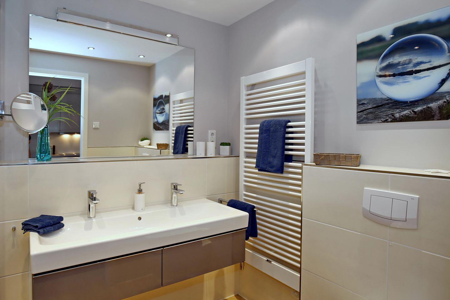 Das moderne Duschbad der Ferienwohnung verfügt über eine große ebenerdige Dusche und einen Föhn. In der gesamten Wohnung sind Bodenfliesen verlegt. Es handelt sich um eine Nichtraucher-Wohnung. Haustiere sind nicht erlaubt.