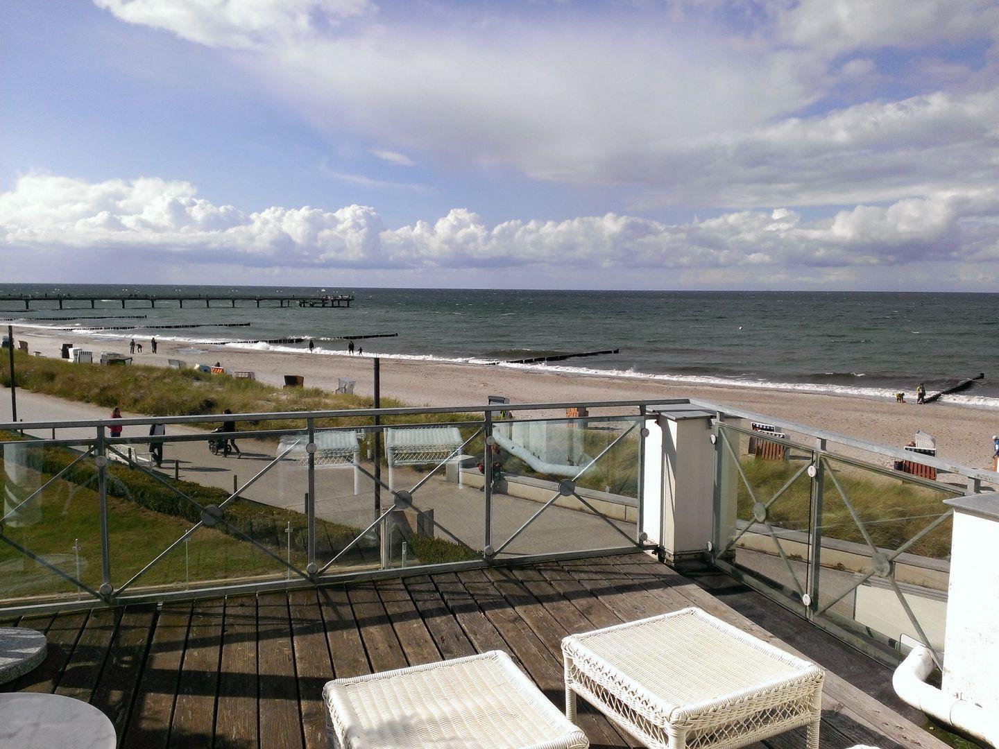 Terrasse: direkter Blick auf die Ostsee und den Strand