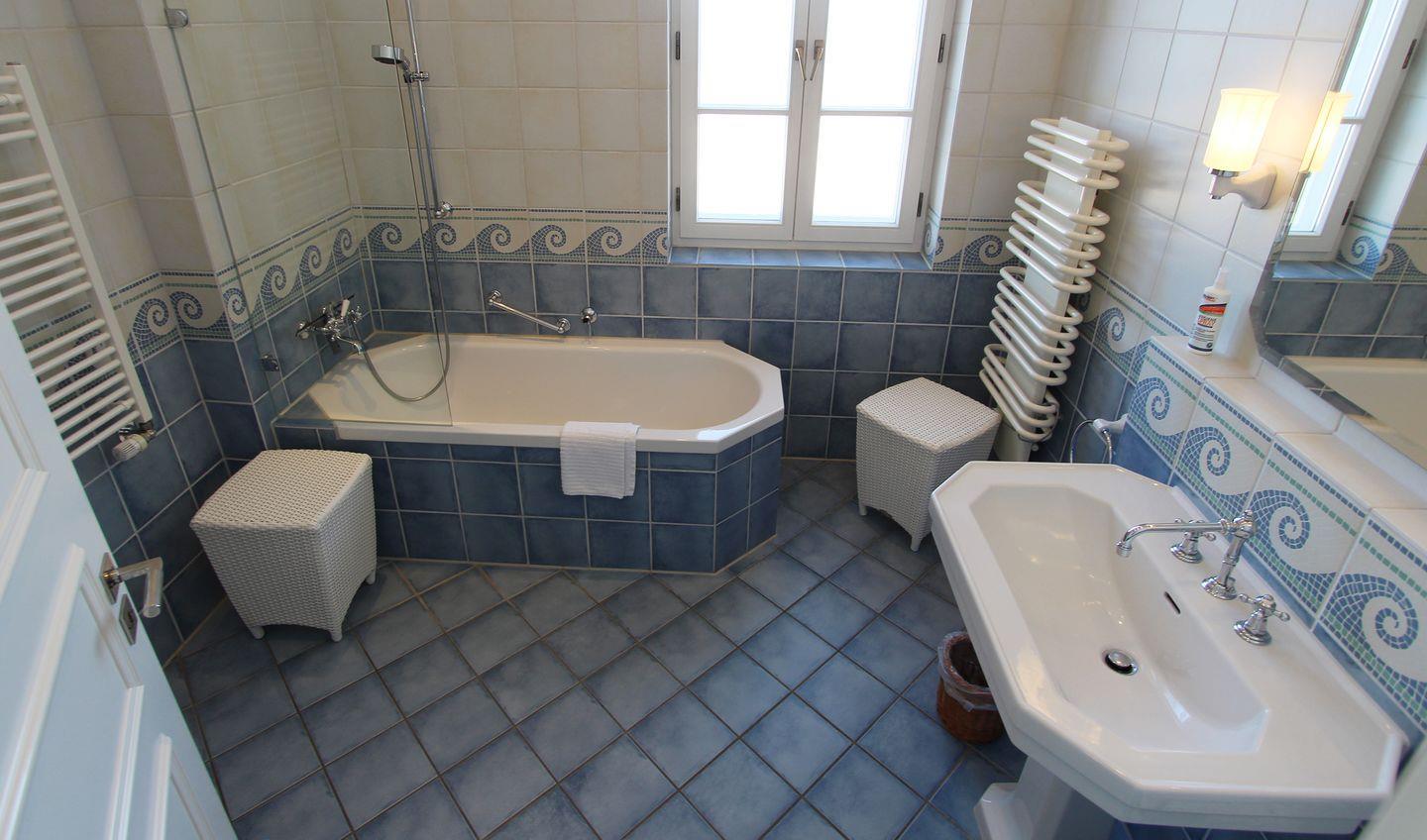 Vollbad: Fenster zum Meer und Badewanne/Duschmöglichkeit, Fön