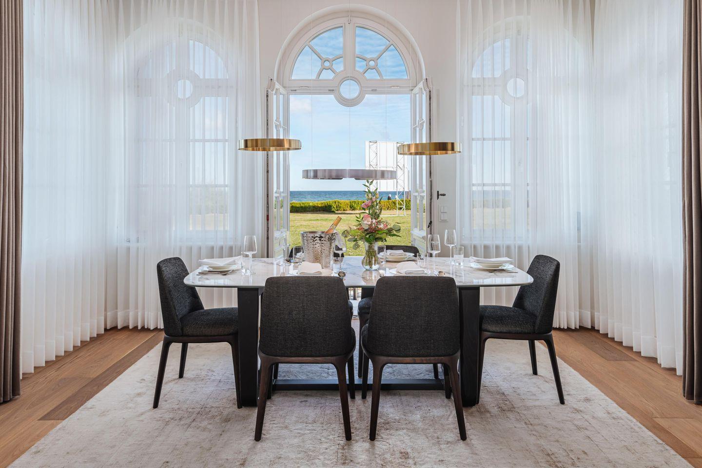 Die Ferienwohnung 02 in der Villa Schwan in Heiligendamm ist eine exklusive 133 m² große 3-Zimmer-Wohnung für bis zu 4 Personen mit einer Terrasse mit Seeblick. Die Villa gehört zu den Logierhäusern der Perlenkette.