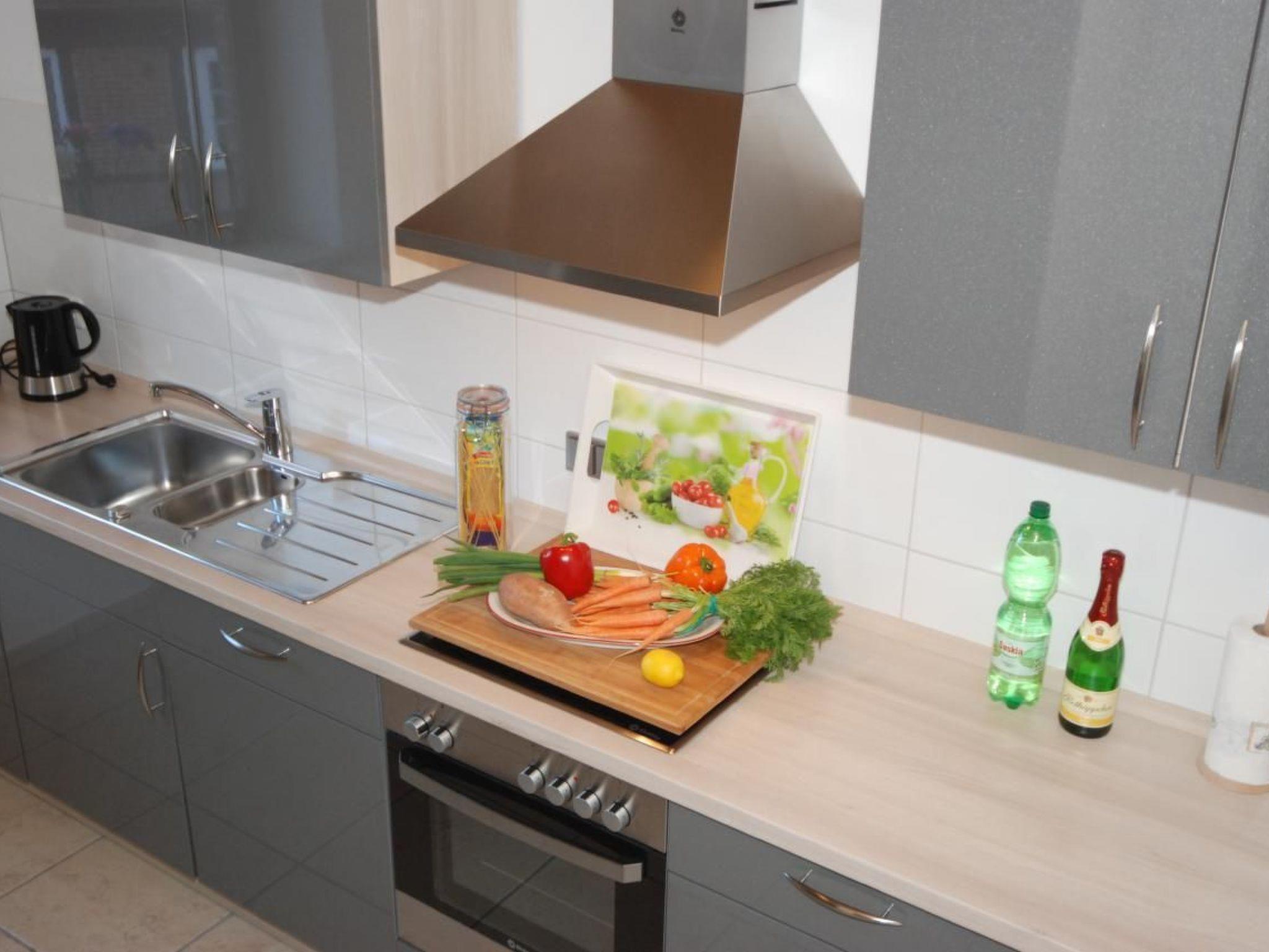 The spacious separate fully equipped kitchen with oven, ceramic hob, dishwasher, coffee/pad machine and various small appliances (kettle, toaster, microwave, etc.) invites you to cook together. The spacious bedroom with double bed is furnished with solid wooden furniture. A modern, spacious and comfortable bathroom with shower completes the picture. In the utility room you will find a washing machine, tumble dryer and ironing facilities as well as a freezer, outside a covered drying area with rotary dryer. A bouquet of flowers and a bottle of sparkling wine await you for a wonderful start to your holiday. We will welcome you personally at the front door, show you around your holiday flat, hand over the keys and see you off after your holiday.