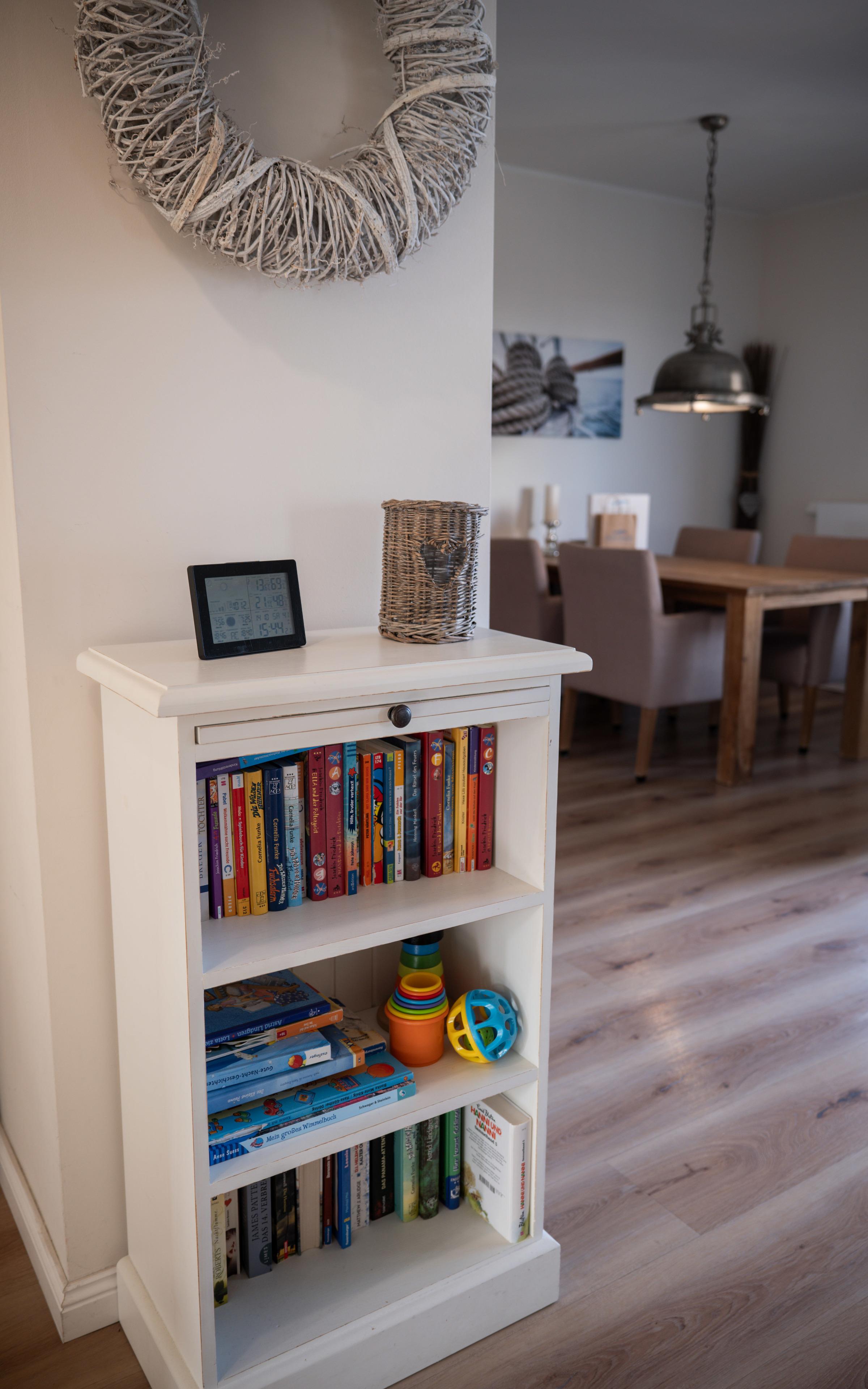 Eingerichtet im maritimen, weißen Landhausstil, mit viel Herz und Liebe gelebt und gepflegt. 89qm Wohnfläche, aufgeteilt in 2 Schlafzimmer, einem Wohn-Essbereich mit Kaminofen und offener Küche, einem Duschbad mit einer "Walkin-Dusche" sowie 2 Balkonen, die Ihnen 3 x Wasserblick garantieren.