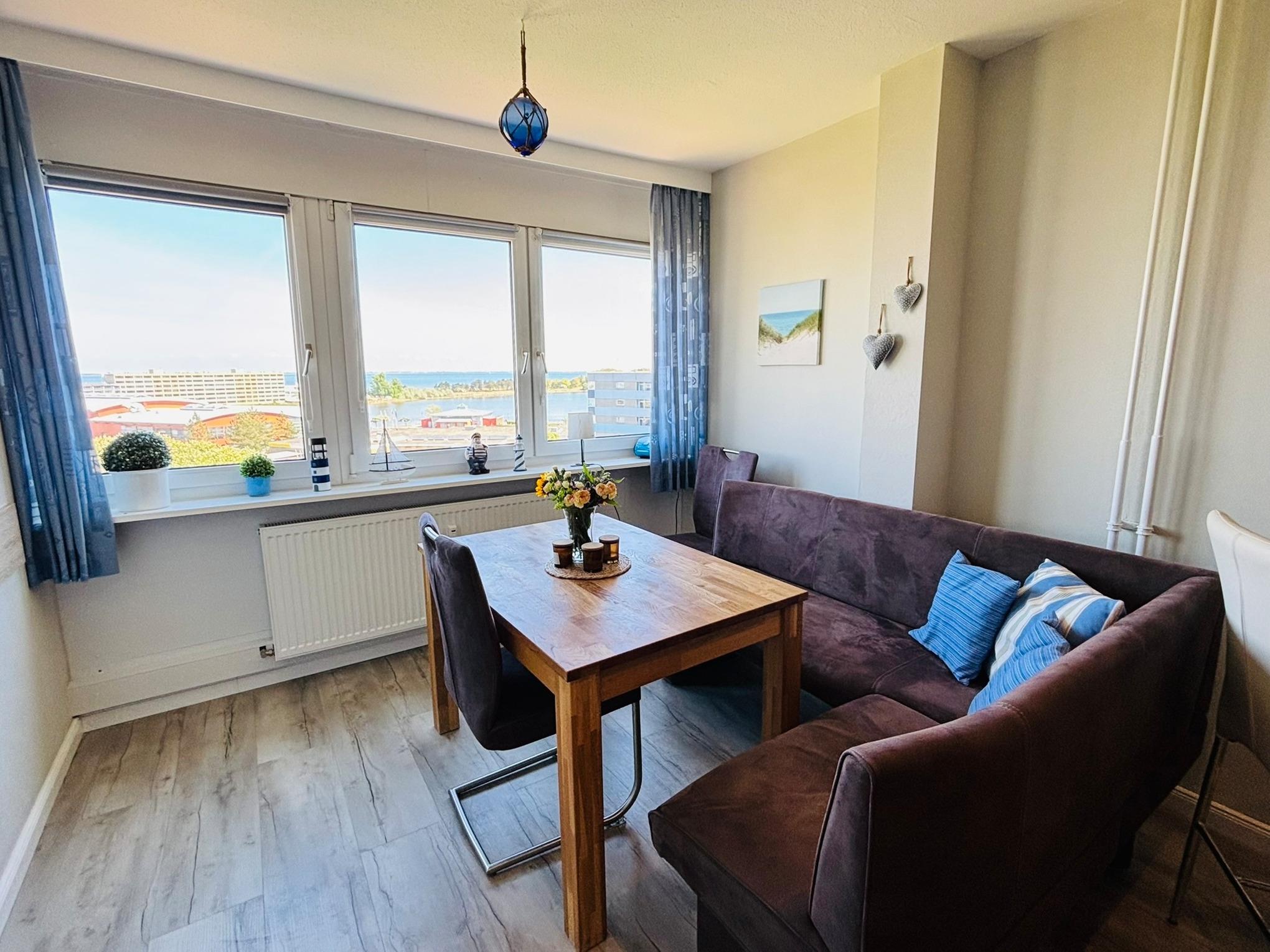 Willkommen im Ferienpark Heiligenhafen an der Ostsee - unsere Ferienwohnung mit Meerblick bietet mit 55m² bis zu 4 Personen viel Platz zur Erholung. Die gemütliche und komfortabel eingerichtete Ferienwohnung verfügt über einen großartigen Blick auf den Binnensee und die Ostsee sowie auf die Insel Fehmarn. Die Nichtraucherwohnung verfügt über ein Wohn-/ Schlafzimmer mit einem Schrankbett für zwei Personen und eine Küchenzeile. In dem separaten Schlafzimmer befinden sich 2 Einzelbetten. Außerdem ist eine komplette Küchenausstattung mit Backofen, Waschmaschine und Spülmaschine vorhanden.