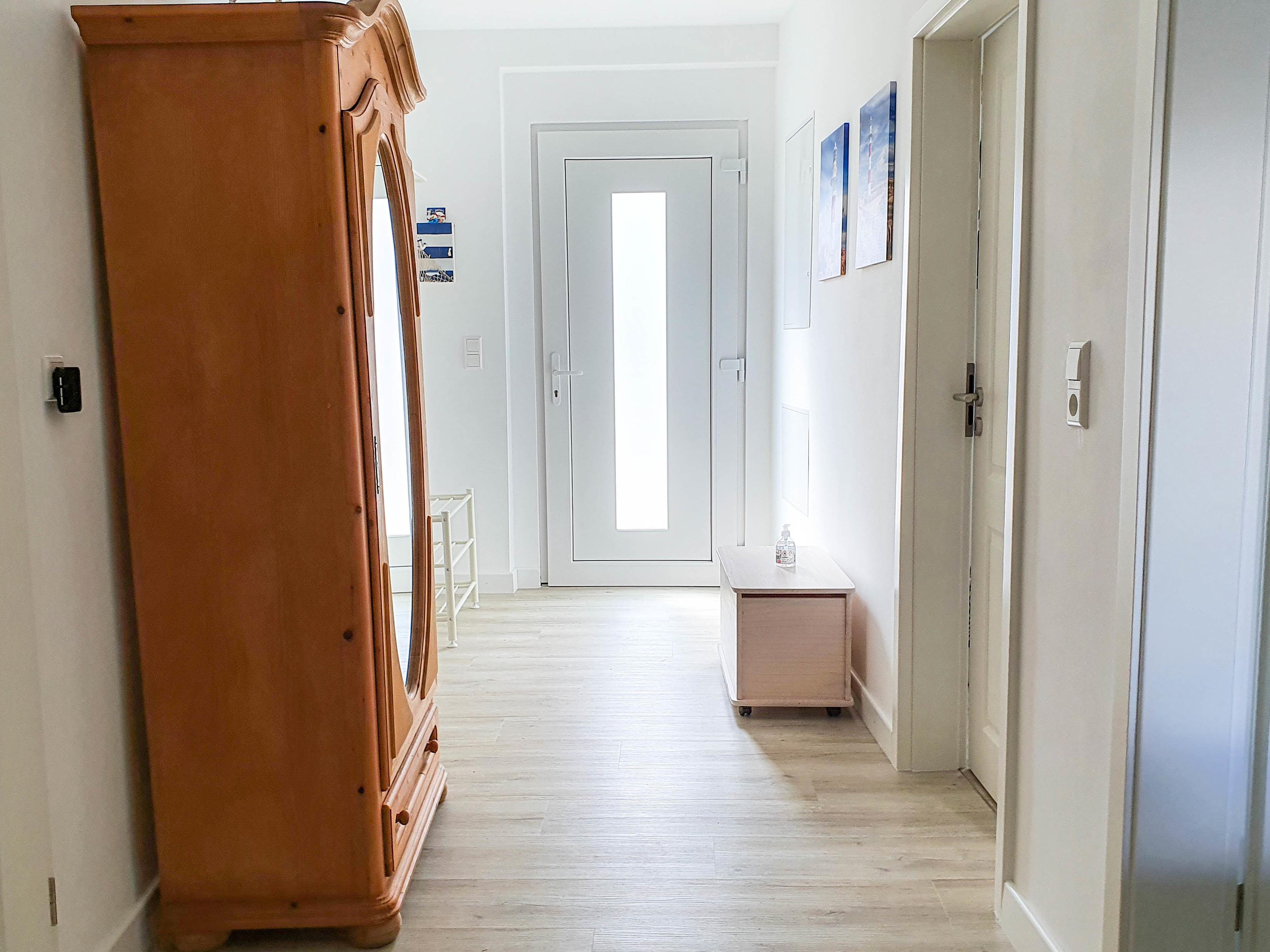 Durch den geräumigen Flur sind alle Räume der hellen Wohnung zugänglich: Das große Schlafzimmer mit 1,80m breitem Doppelbett bietet echtes Ostseefeeling und lädt zum Entspannen ein. Die "Lütten" können sich in ihr eigenes Zimmer mit zwei Einzelbetten zurückziehen. Alle Betten verfügen über verstellbare Lattenroste. Im Wohnzimmer findet ihr mit einem Smart TV, Musikanlage (Radio, CD, Bluetooth) und einem großen Sofa alles für einen gemütlichen Abend vor. Die Küche ist mit einem Esstisch für 4 Personen und einer voll ausgestatteten Einbauküche mit Cerankochfeld, Backofen, Dunstabzugshaube und Geschirrspülmaschine bestens für gemeinsame Koch-Abende vorbereitet. Neben der Toilette und dem Waschbecken, ist das Badezimmer mit einer großen Dusche mit ebenerdigem Eintritt, klappbarem Duschsitz und einer Waschmaschine ausgestattet und lässt keine Wünsche offen. Ihr wollt wenig schleppen und eure Drogerieartikel erst vor Ort kaufen? Bei uns kein Problem! Für die Ankunftszeit steht euch ein kostenlos Starterset an Hygieneartikeln zur Verfügung! Auch gemütlichen Stunden im Freien steht dank eines Elektro-Grills und Sitzmöglichkeiten auf der Terrasse nichts mehr im Wege. Die gesamte Wohnung verfügt über WLAN, sowie einen Safe für eure Wertsachen. Euer Auto könnt Ihr auf dem Gästeparkplatz abstellen.