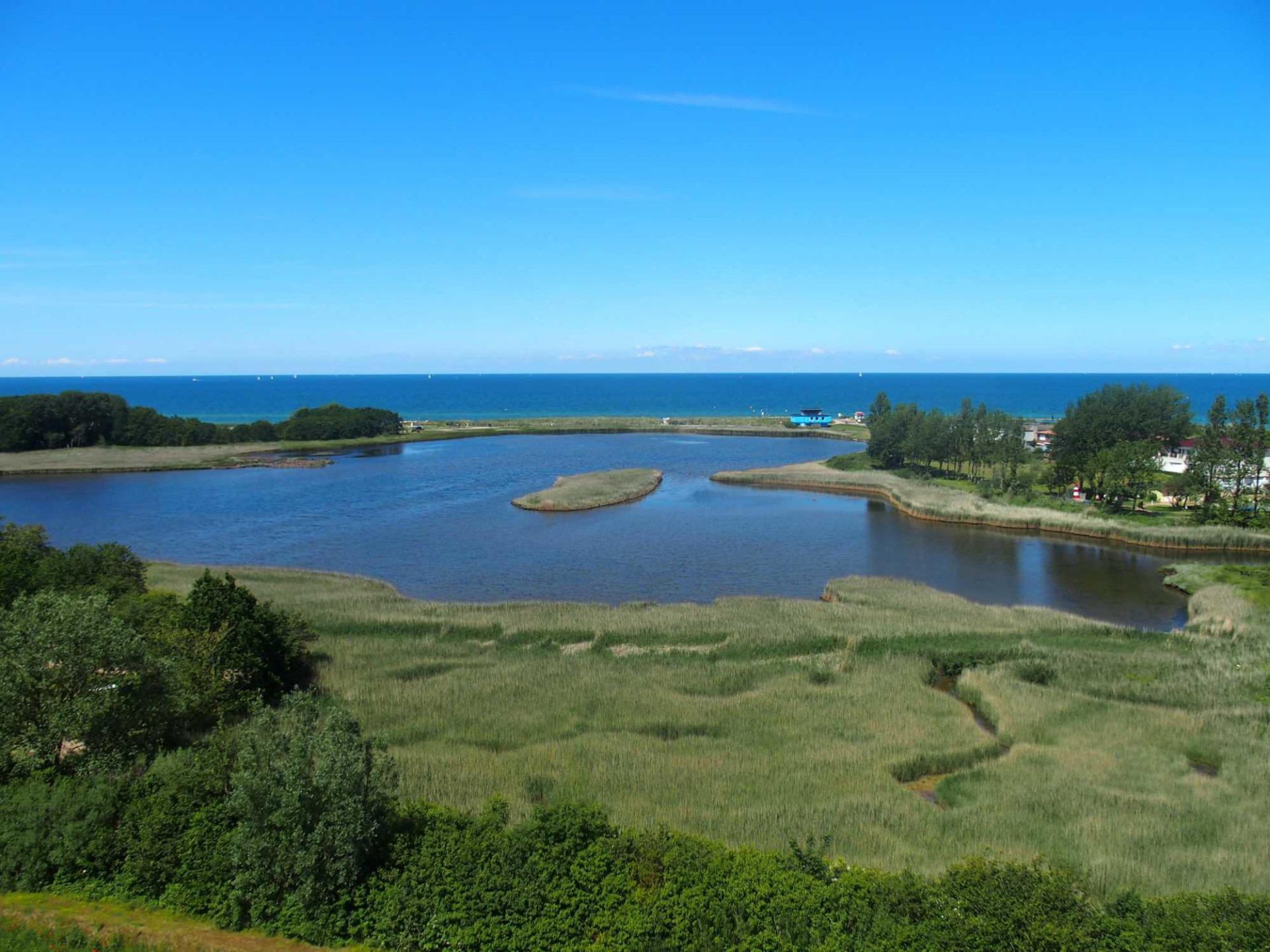 Der Blick vom Leuchtturm Dazendorf bis zur Fehmarn- Sundbrücke über die Salzwiesen und die Ostsee ist GIGANTISCH.