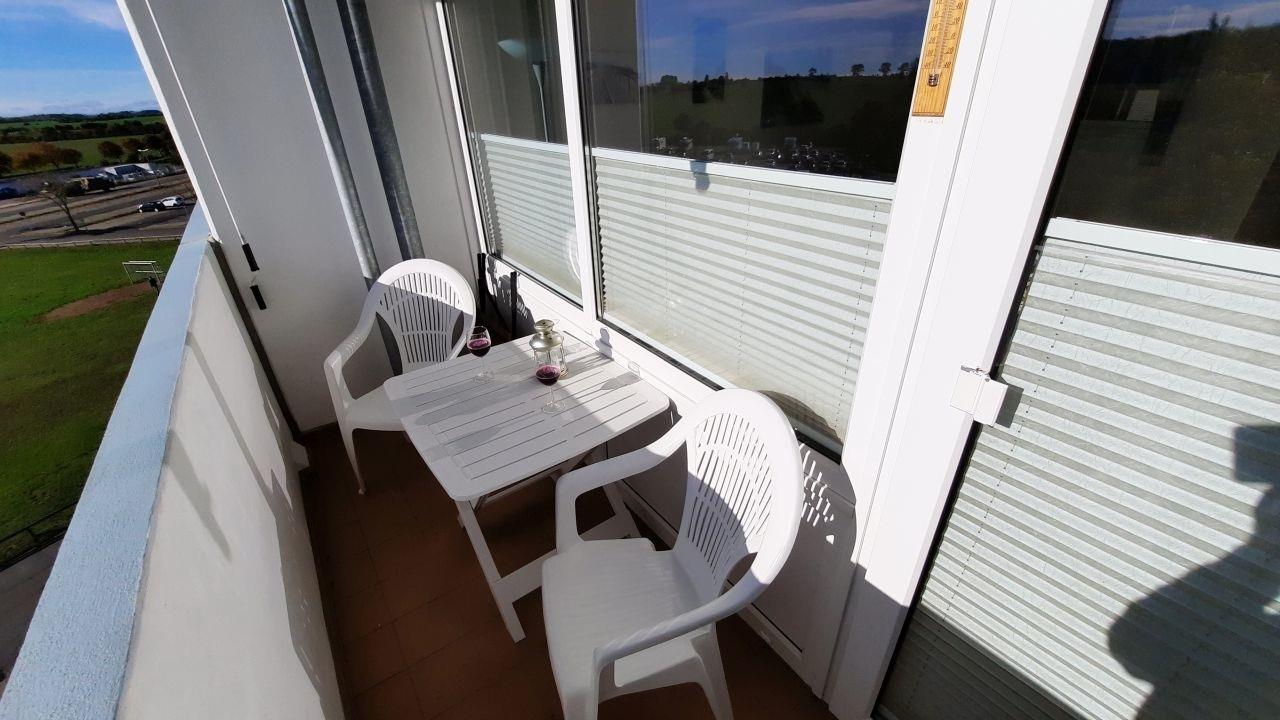 Das Apartment "Südjuwel" wurde 2022 komplett renoviert und liegt im Haus I des Ferienparks, in der 4. Etage, die Sie bequem mit dem Fahrstuhl erreichen können. Es hat einen hellen Balkon zur Südostseite, der Sonne von der Frühstückszeit am Vormittag bis in die späten Nachmittagsstunden bietet.
