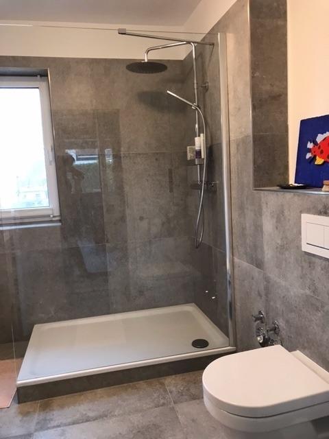 Da sich das Haus in einer Hanglage befindet, liegt der nördliche Eingang der Wohnung im 1. Obergeschoss, während sich die Wohnung nach Süden in den parterre gelegenen Garten öffnet. Vor dem Haus besteht eine Parkmöglichkeit