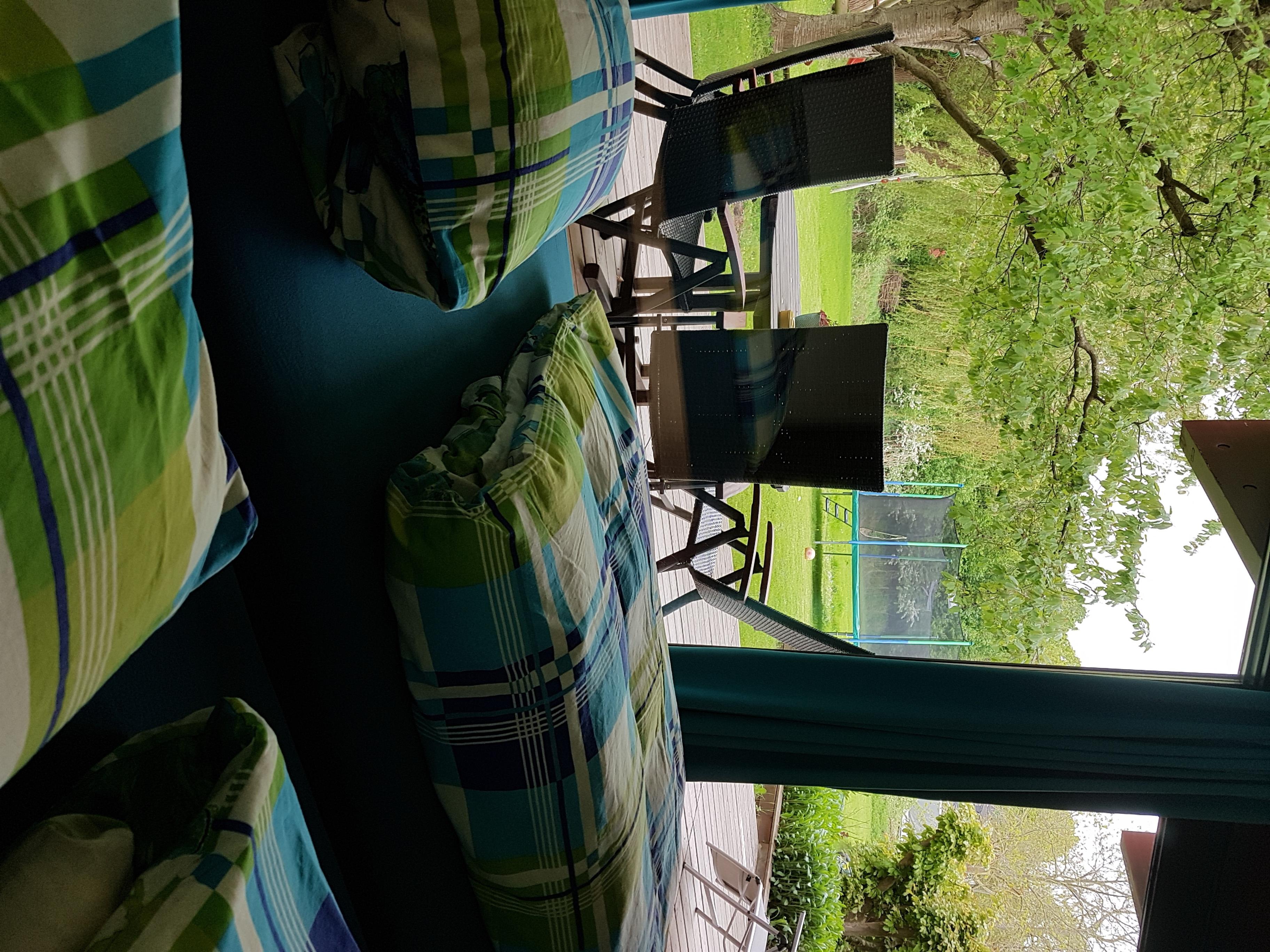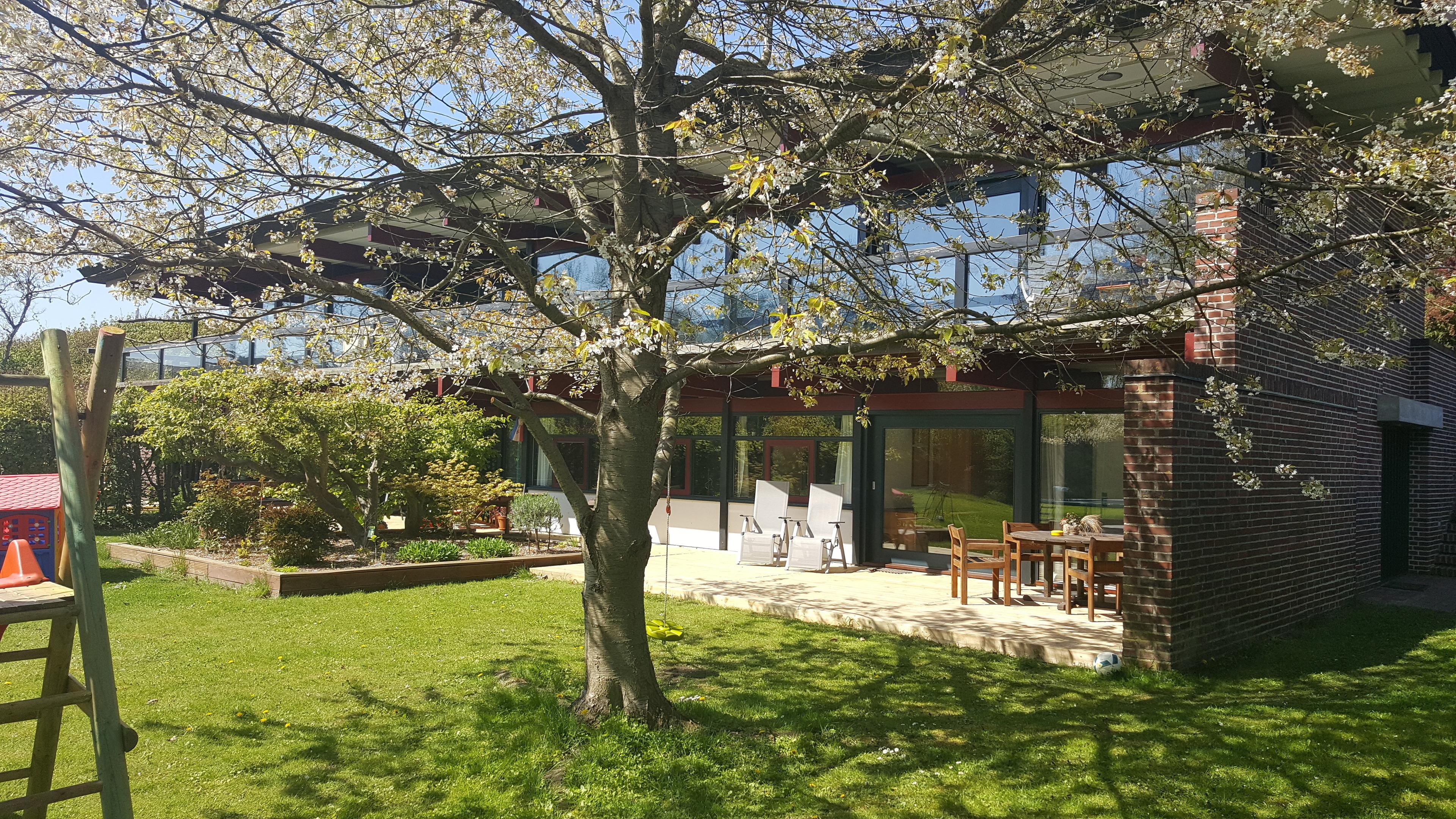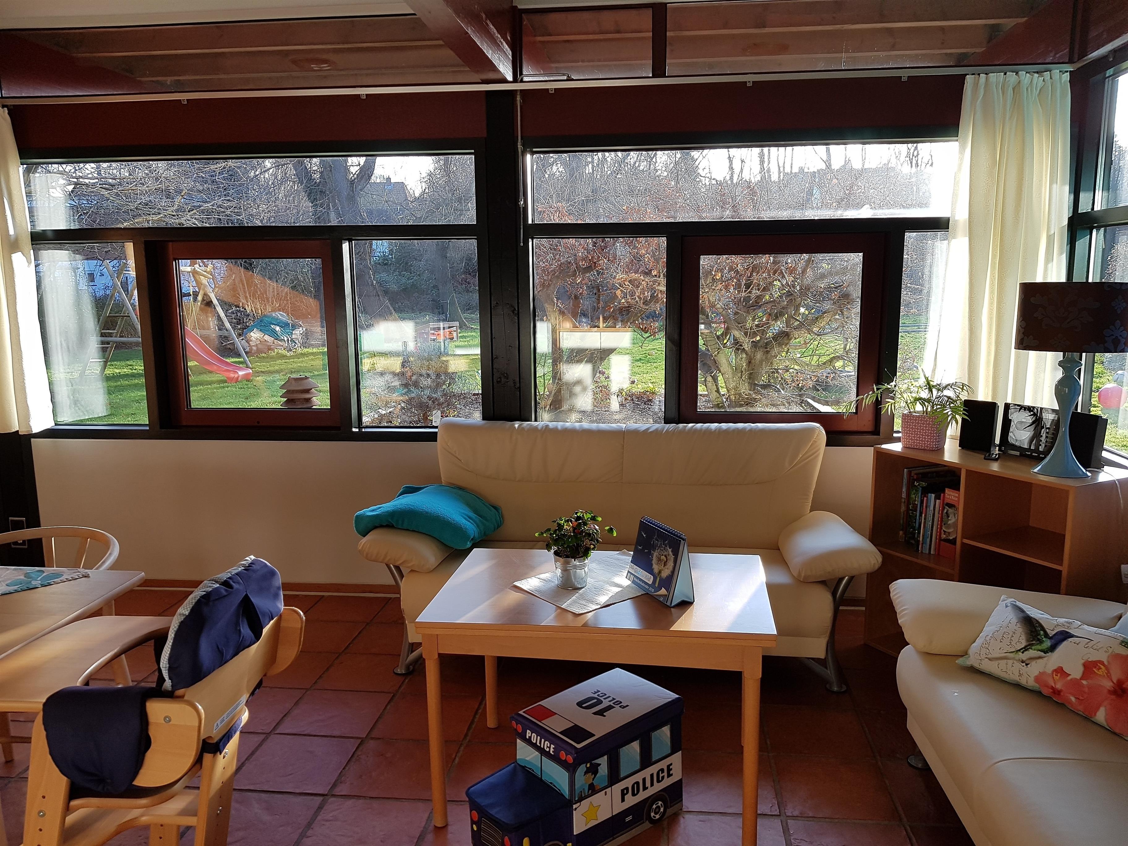 Von der gesamten Wohnung aus haben Sie einen offenen Blick in den Garten, auf den Bach und unser Wäldchen.
