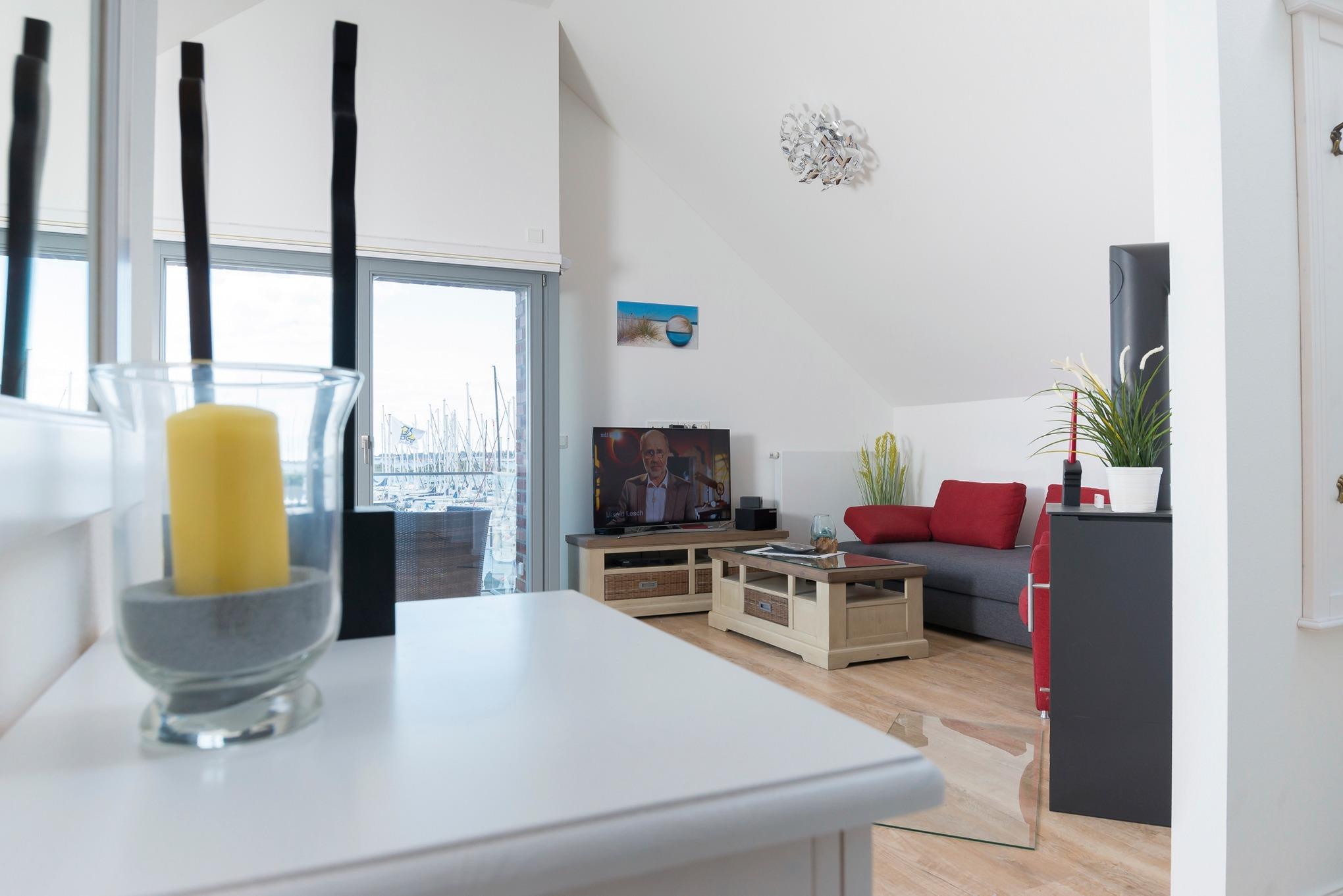 Die Wohnung liegt direkt am Yachthafen in der 2. Etage und ist mit 2 Balkone ausgestattet. Von dort hat man einen sehr schönen Weitblick auf den Binnensee und auf der anderen Seite auf den Yachthafen. Sollte das Wetter einmal schlecht sein, haben Sie die Möglichkeit in der vorhandenen Sauna oder vor dem Kamin zu entspannen. Zum weitläufigen Sandstrand sind es nur wenige Meter. Auch in die Stadtmitte und zu den Gaststätten ist es nicht weit und für die Kleinen gibt es jede Menge Aktivitäten vor Ort.