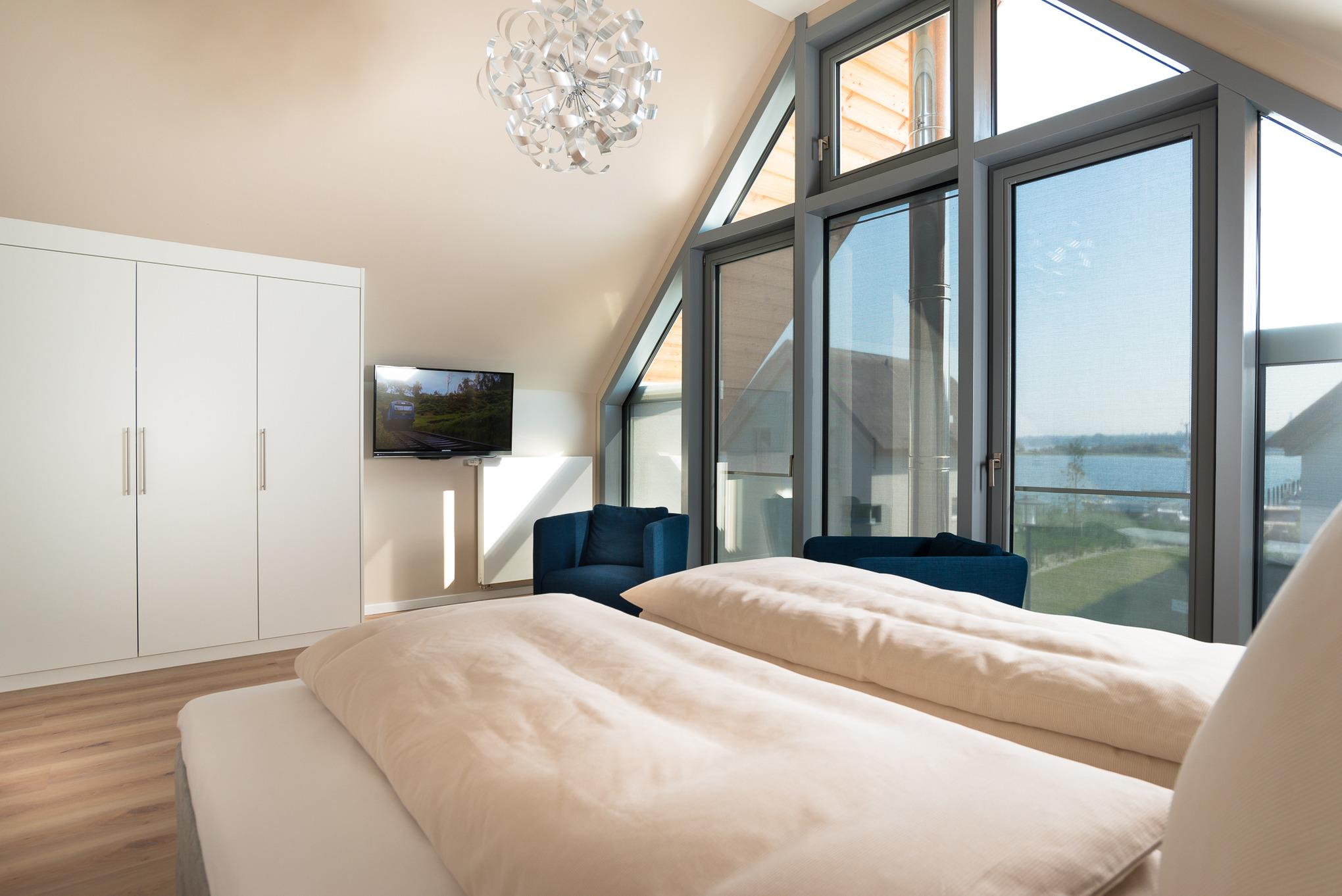 Wunderbarer Blick auf die weite Ostsee und den romantischen Segel-Yachthafen.