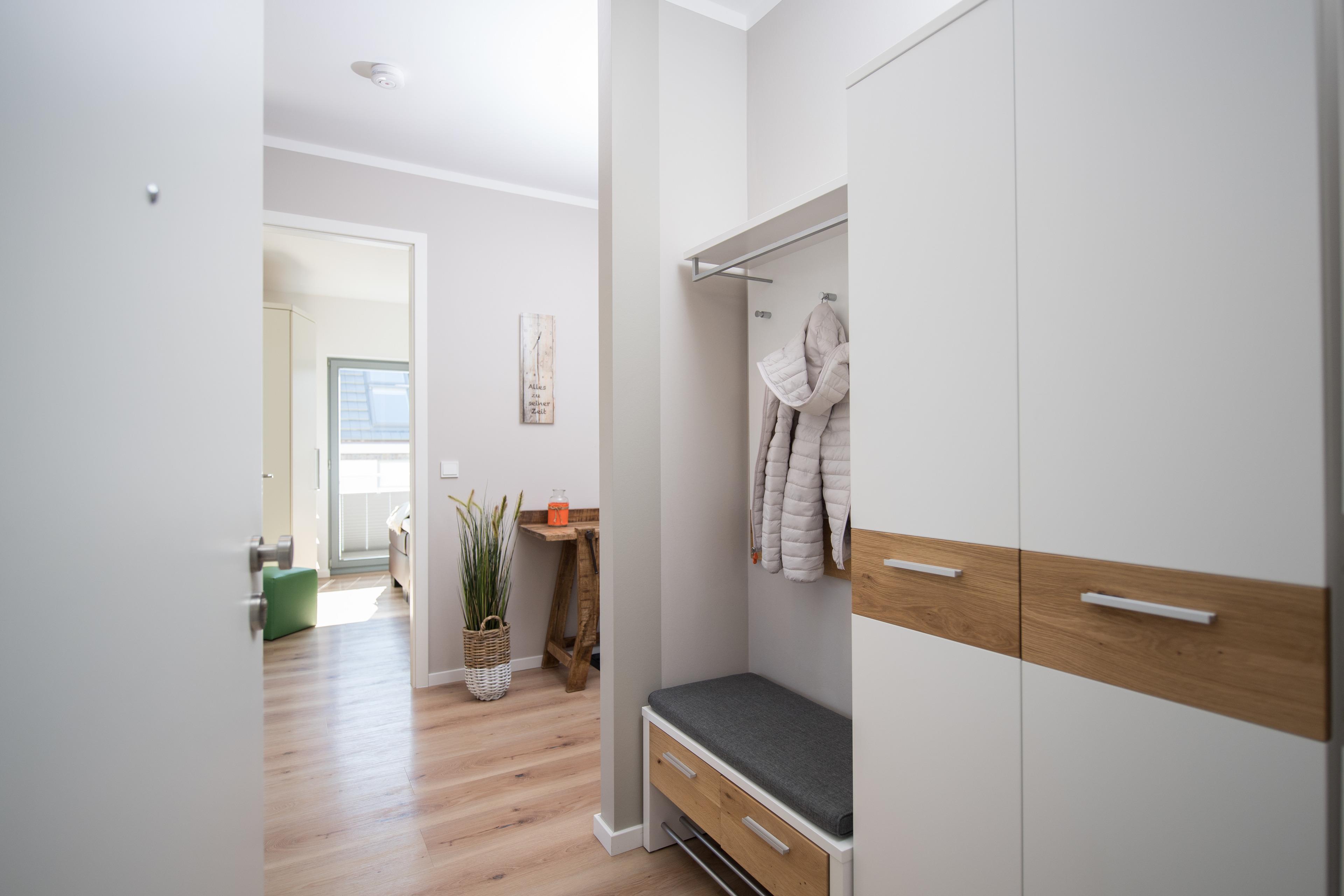 Moderne, ca. 77qm große Ferienwohnung mit gehobener Ausstattung zum Wohlfühlen und Abschalten. Flach-TV, Radio mit CD und Internet sind vorhanden. Genießen Sie von 2 Balkonen den Blick auf die Ostsee oder zum Yachthafen. Die Balkone sind mit Gartenmöbeln und Clubsesseln ausgestattet, um den ganztägigen Sonnenschein genießen zu können. Zwei Schlafzimmer mit Boxspringbetten fördern ausreichenden und erholsamen Schlaf. Ein Kinderreisebett und ein Hochstuhl sind ebenfalls vorhanden. Moderne, komplett ausgestattete Küche mit vielen Elektrogeräten und ausreichend Geschirr sind selbstverständlich. An kalten Tagen kuscheln Sie sich auf die Ledersofas und genießen die Wärme des holzbefeuerten Kaminofens. Ein geräumiges Bad mit WC, Dusche und Badewanne runden die Ferienwohnung ab. Ein Abstellraum mit Waschmaschine und Wäschetrockner, ein Bügeleisen und Bügelbrett sowie ein Safe stehen zur Verfügung.