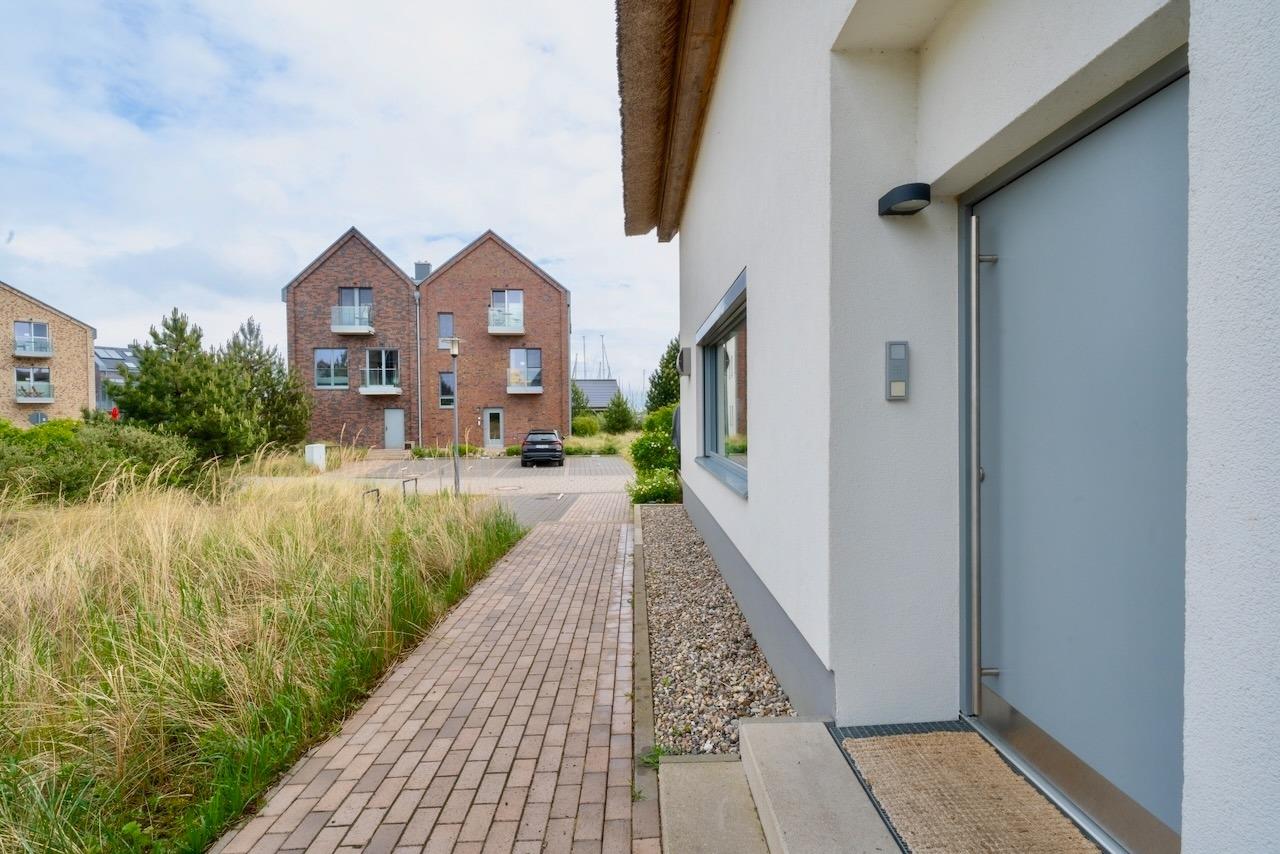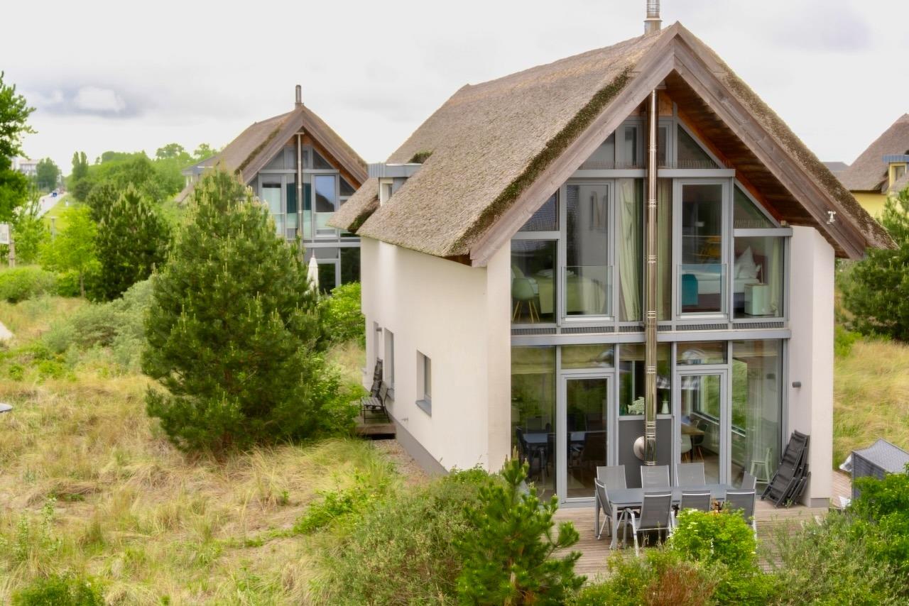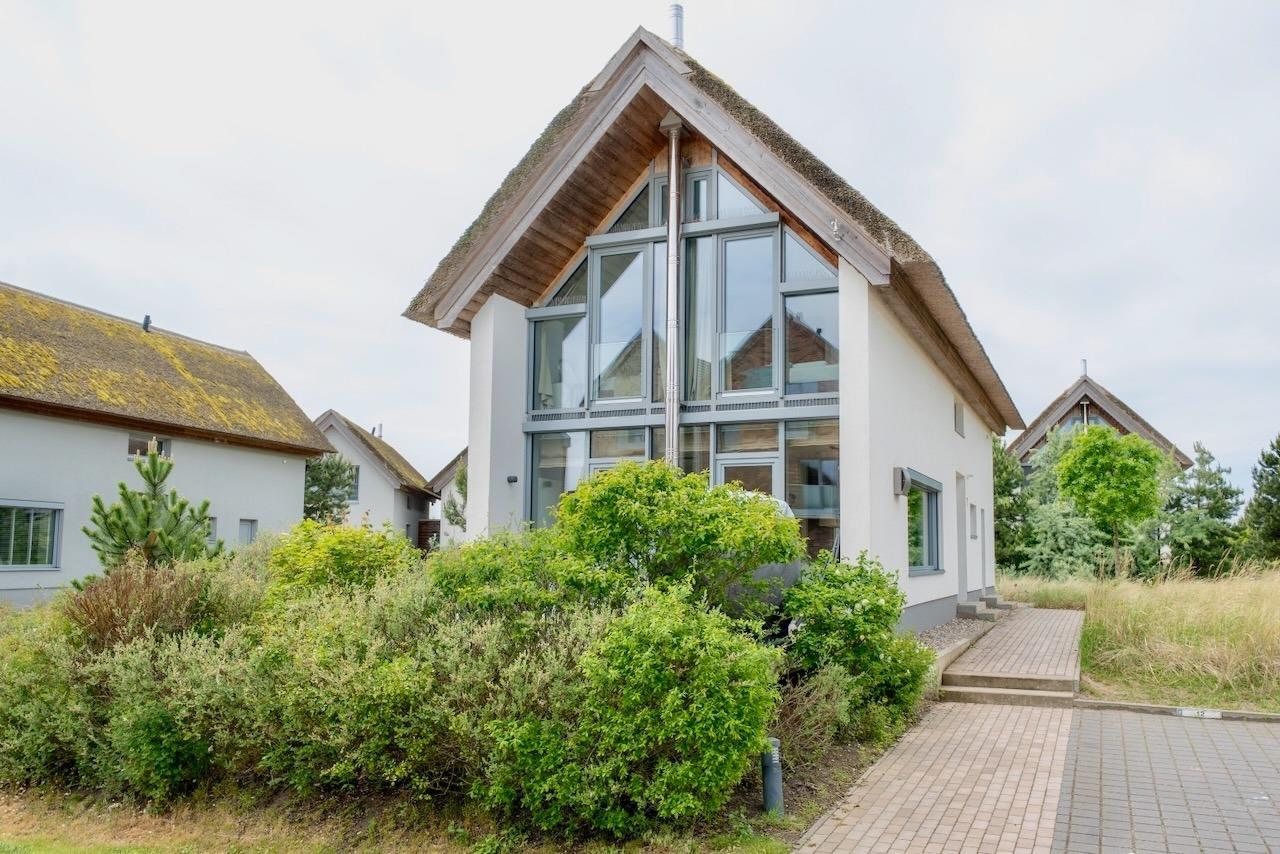 Das reetdachgedeckte Ferien-Einzelhaus liegt in der ruhigen Lage einer exklusiven Feriensiedlung – nur eine Gehminute vom Strand entfernt. Mit zwei modernen Badezimmern, drei hellen Schlafzimmern und der Möglichkeit zweier Schlafcouch-Plätze bietet es ausreichend und komfortablen Platz für Urlaube mit Familien und Freunden. Ein lichtdurchfluteter Raum mit Küche und Esszimmer lädt mit seinem großzügigen Tisch zu leckeren Mahlzeiten ein. Das separate Wohnzimmer bietet Gemütlichkeit und einen Blick auf den Binnensee, optional steht auch hier eine weitere Schlafcouch zur Verfügung.