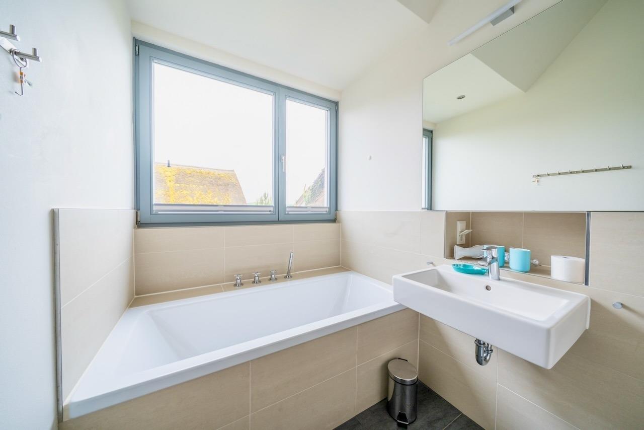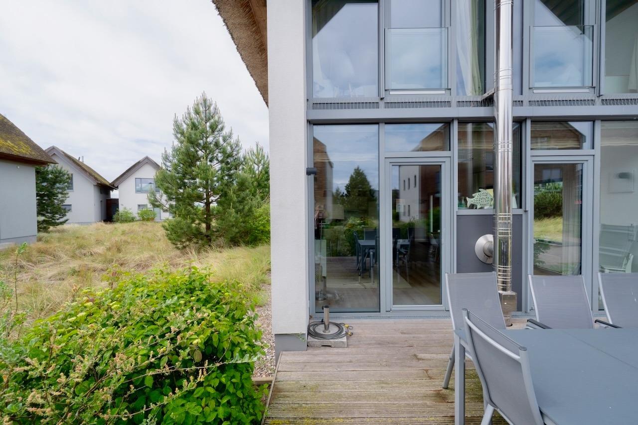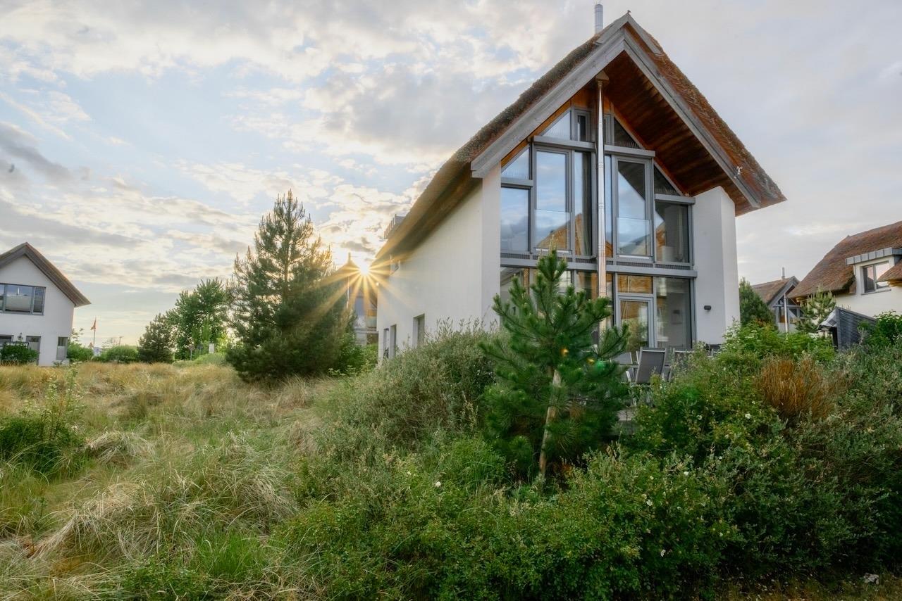 Tastefully furnished single house with light-flooded rooms and lovely reed thatching. The ideal house with lot of comfortable space (2 bathrooms, 3 bedrooms, sauna, oven fireplace...) for your vacation together with your family or friends – only a 5 minutes walk to the beach & sea.