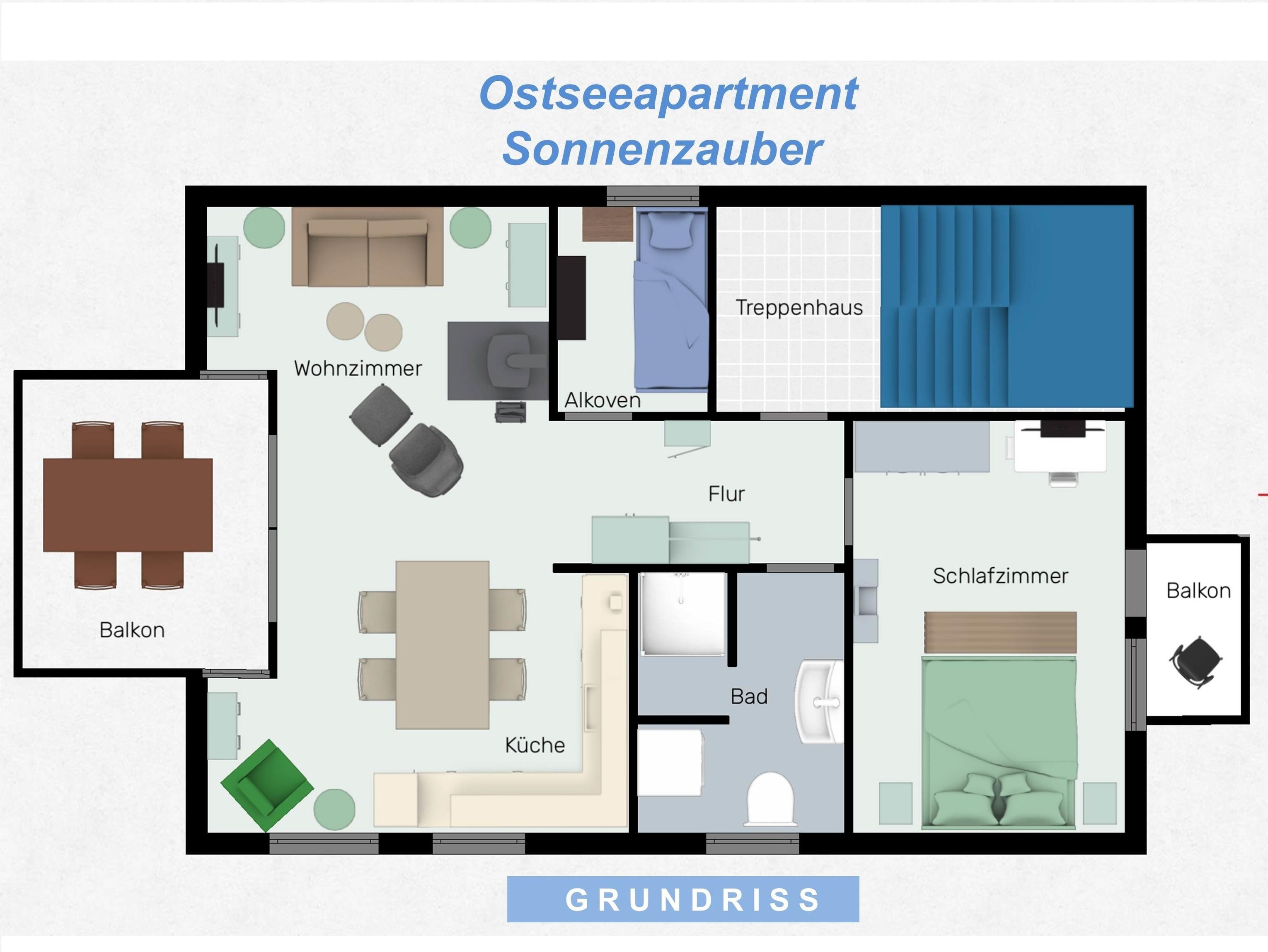 Das 54 qm große Apartment Sonnenzauber bietet Platz für Familien und Gäste mit bis zu 4 Personen.