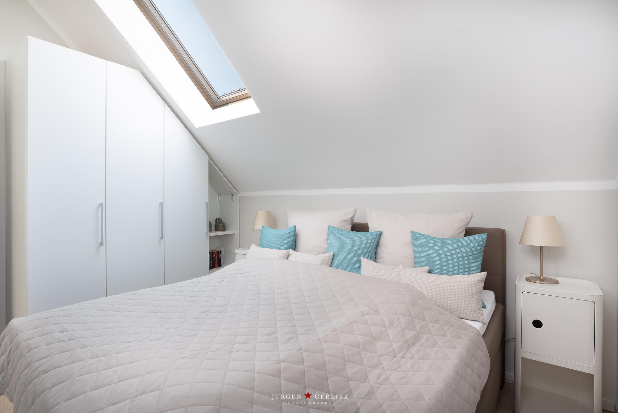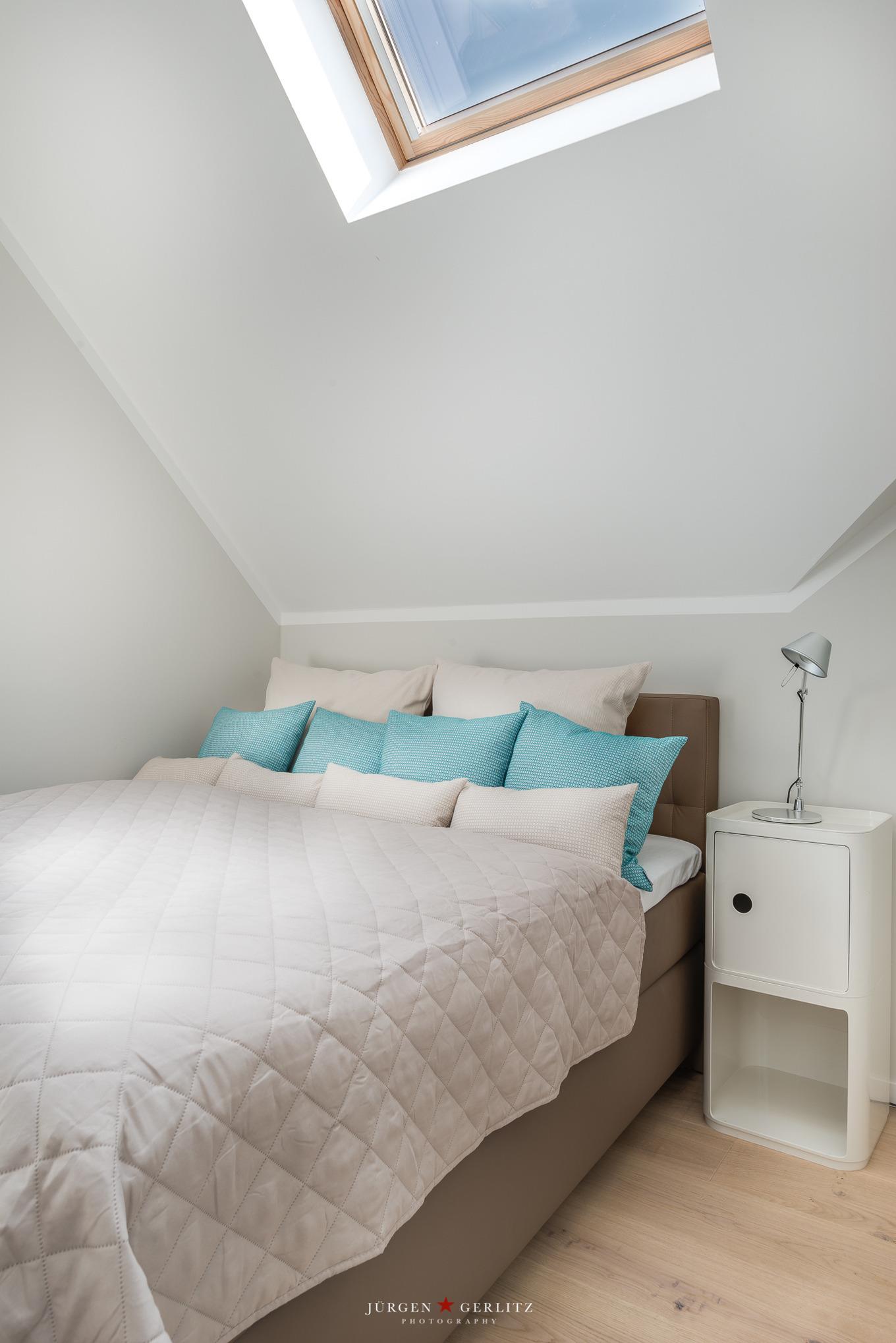 Sämtliche Dachfenster sind elektrisch steuerbar und mit Regensensoren versehen, die Schlafzimmerfenster zusätzlich mit elektrischen Verdunklungsrollos.