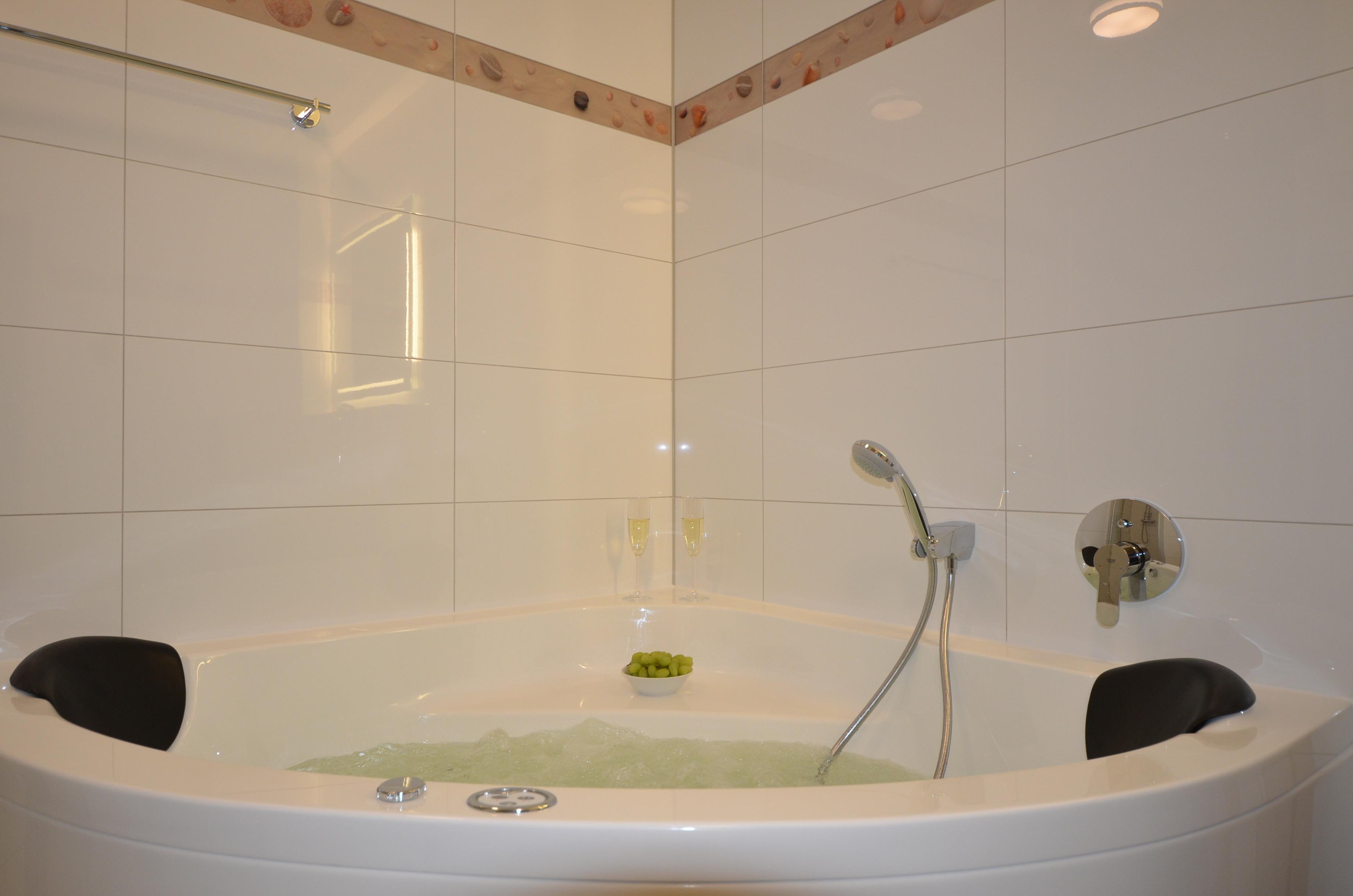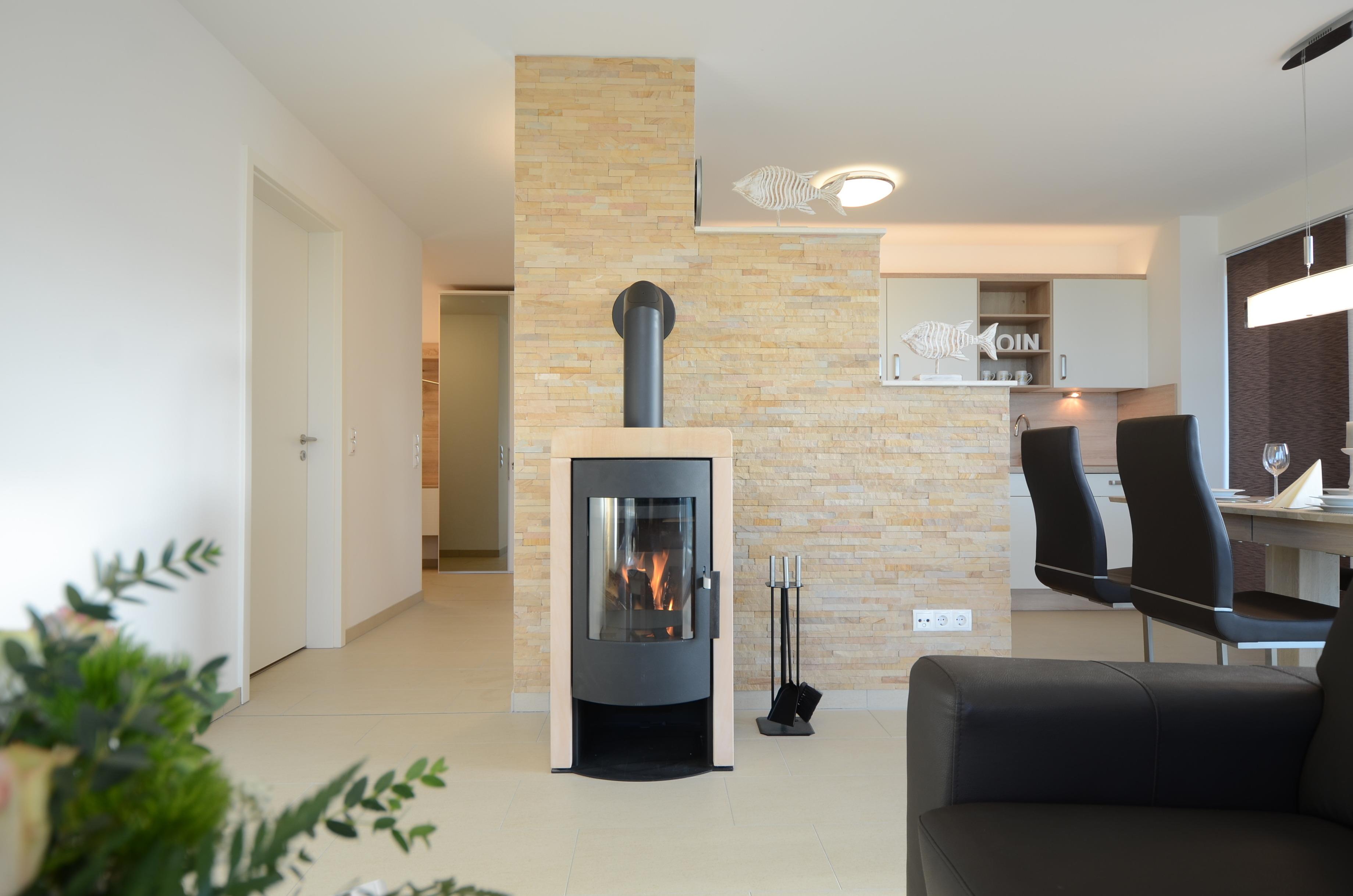 Ausgestattet ist die Ferienwohnung mit einem Whirlpool, einer Rain-Shower-Dusche, Fußbodenheizung, großem Balkon und einen Kaminofen.