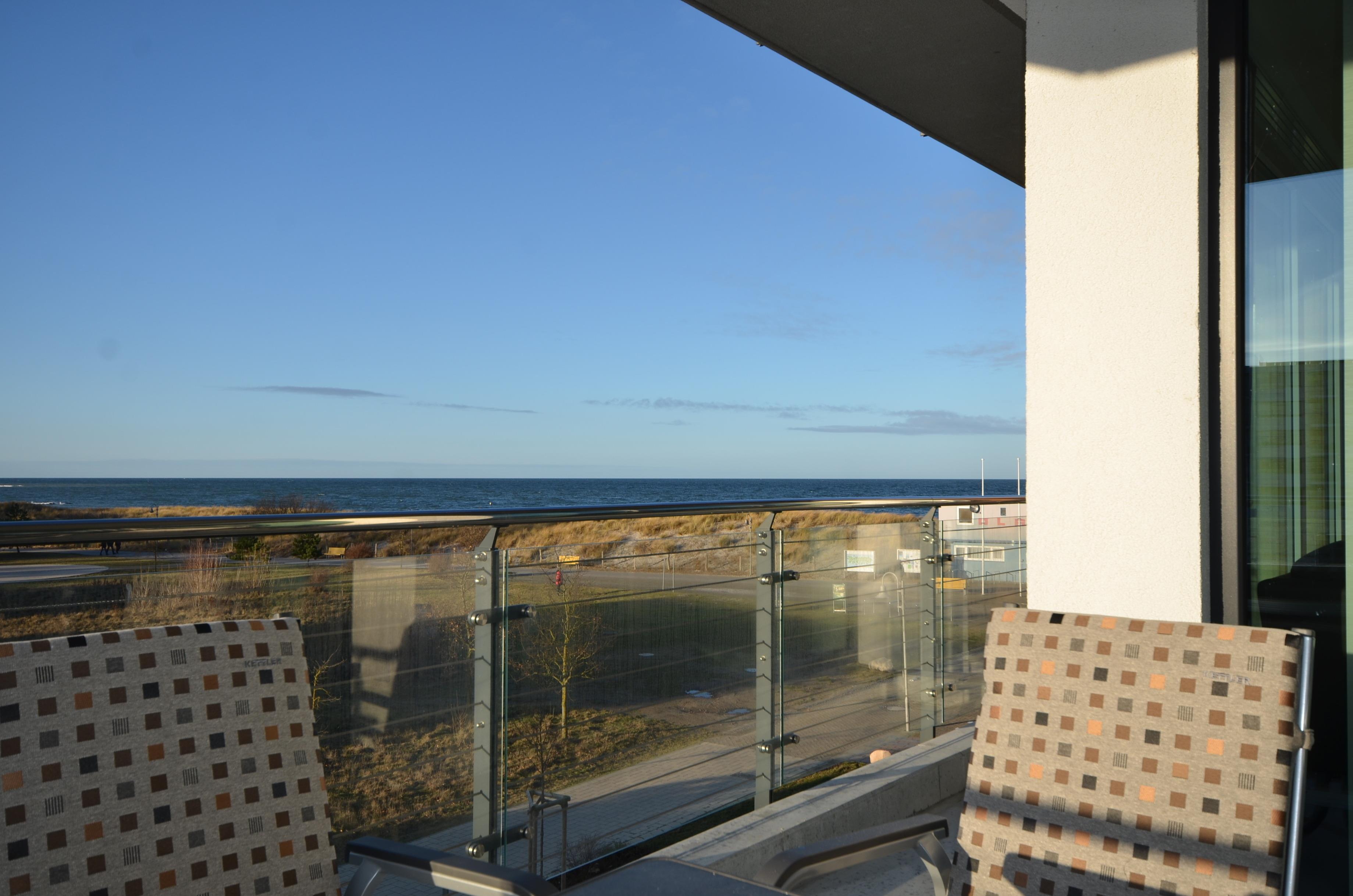 Die Ferienwohnung mit Süd-West-Ausrichtung verfügt über einen seitlichen Meerblick auf die Ostsee und über die Dünen hinweg.