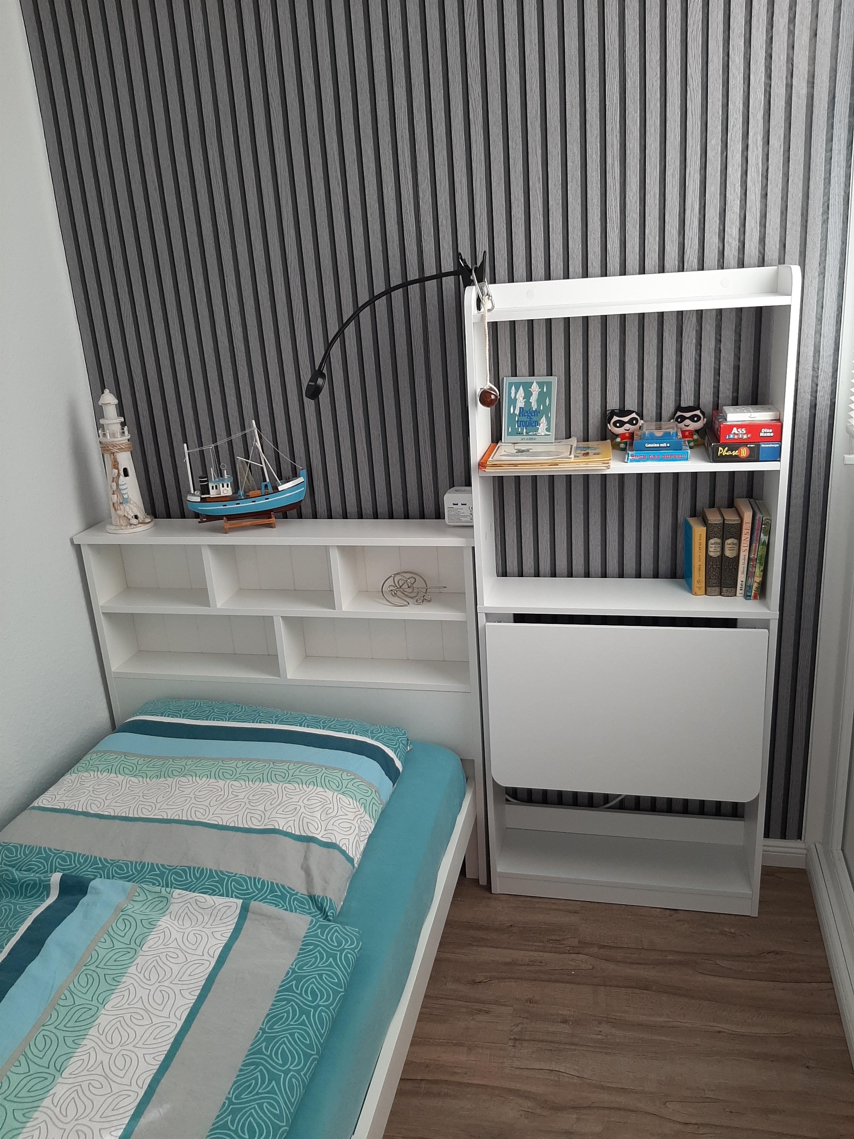 1 sep. Zimmer: Zimmer abgehend vom Wohnzimmer verfügt über ein Fenster, 1 Bett 90x200 cm, Regal mit Schreibfläche, Spielsammlung. Verdunklungsmöglichkeit
