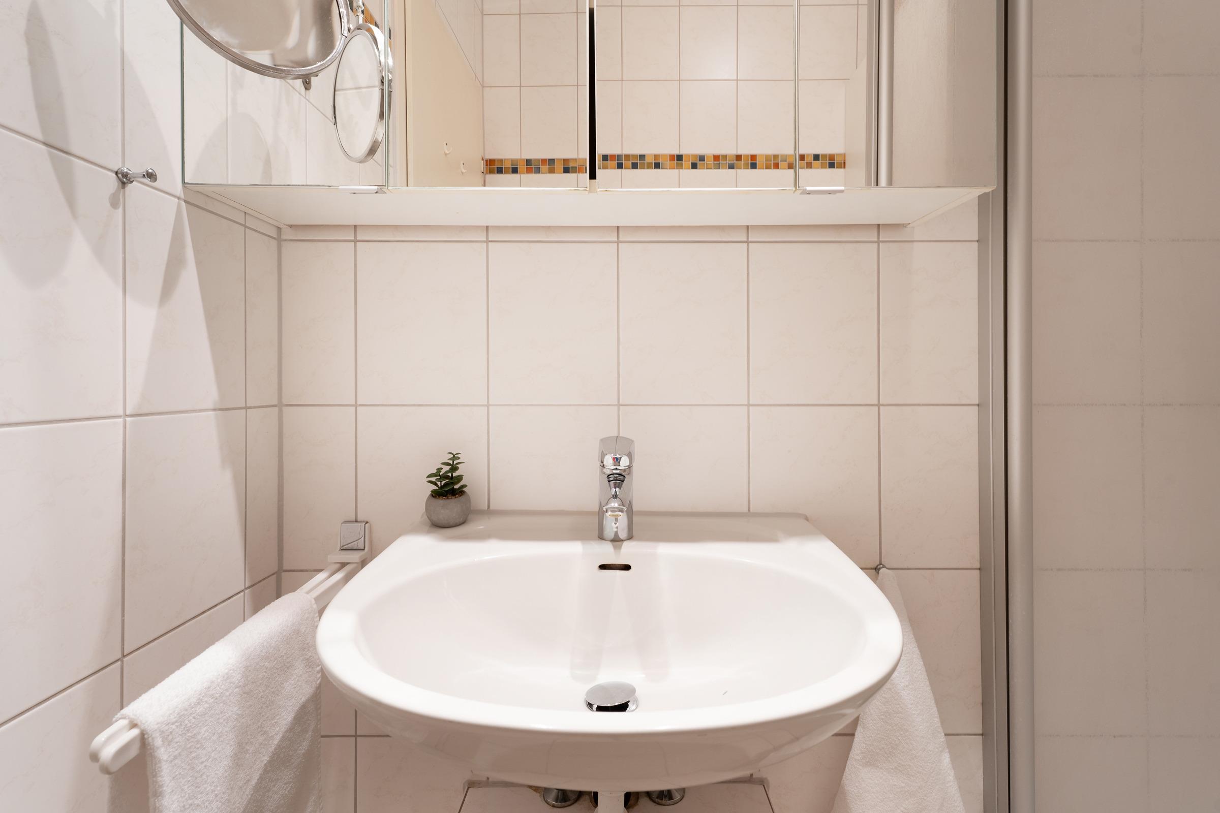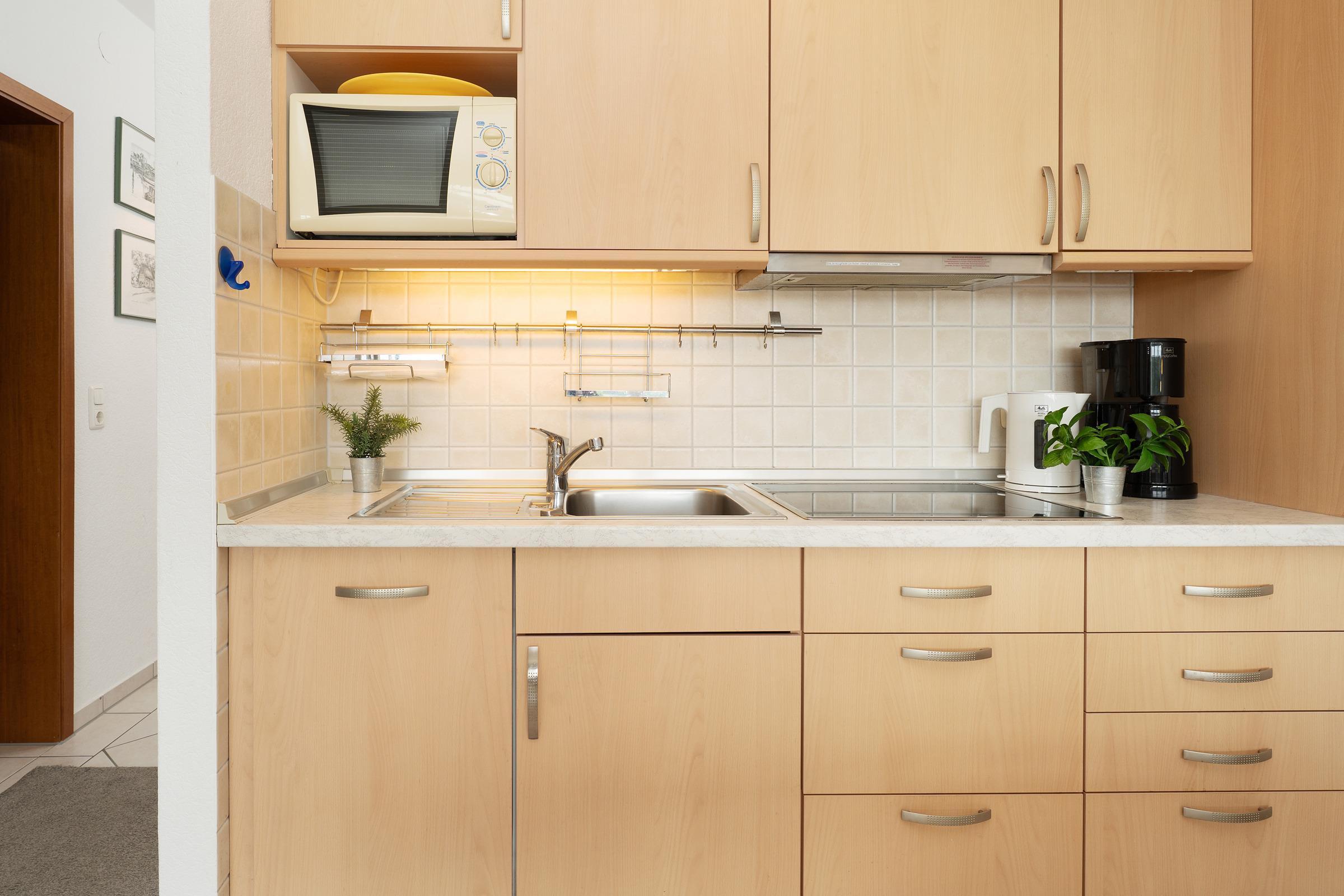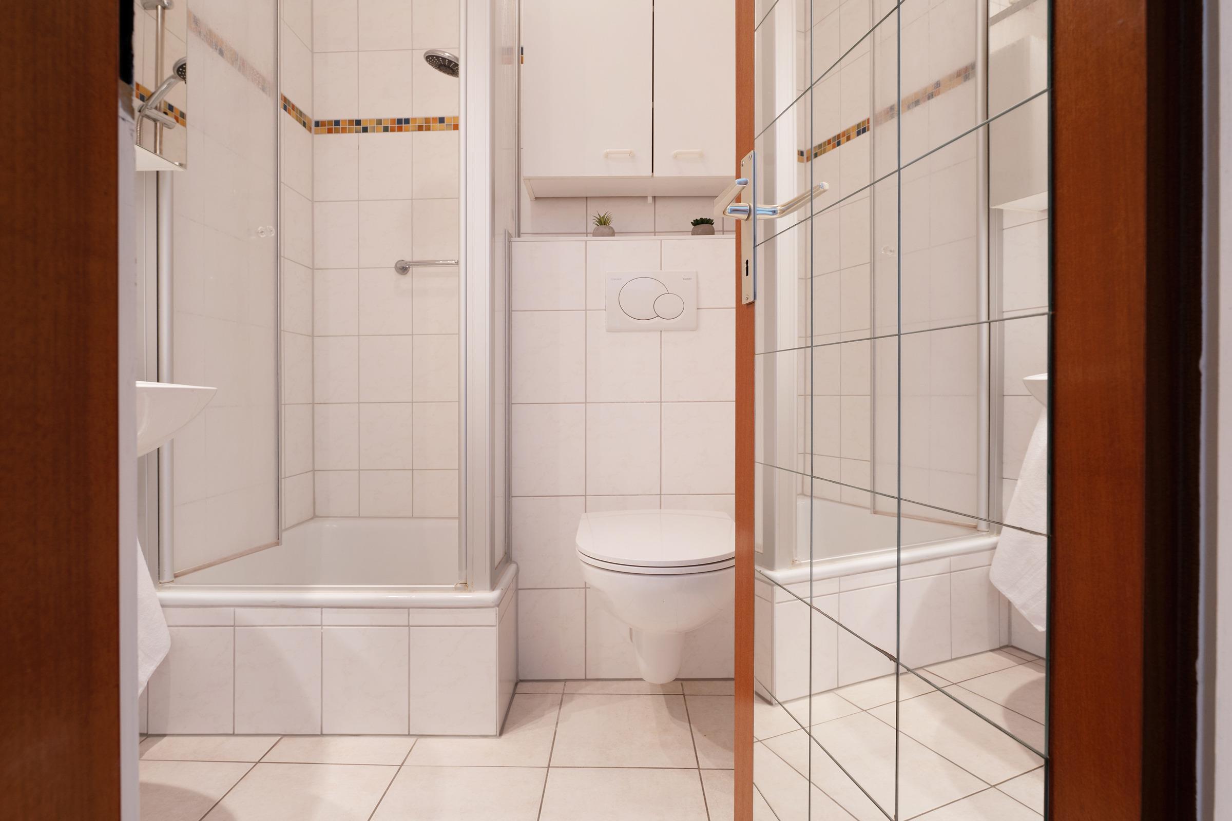 Freuen Sie sich auf einen hellen Wohnbereich mit bequemer Sofaecke, Fernseher und Radio – perfekt für entspannte Stunden. Direkt vom Wohnraum betreten Sie den sonnigen Südbalkon mit Outdoormöbeln ausgestattet, der zum Essen im Freien einlädt. Die voll ausgestattete Küchenzeile verfügt über ein 4-Platten-Cerankochfeld, Backofen, Mikrowelle, Kühlschrank mit Gefrierfach, Geschirrspüler, Kaffeemaschine, Wasserkocher und Toaster. Im angrenzenden Essbereich finden alle Gäste bequem Platz. Das Hauptschlafzimmer bietet ein Doppelbett und einen weiteren Fernseher, im zweiten Schlafzimmer sorgt ein Etagenbett für kindgerechte Schlafplätze. Das Bad verfügt über Dusche mit flachem Einstieg (33 cm) und WC.