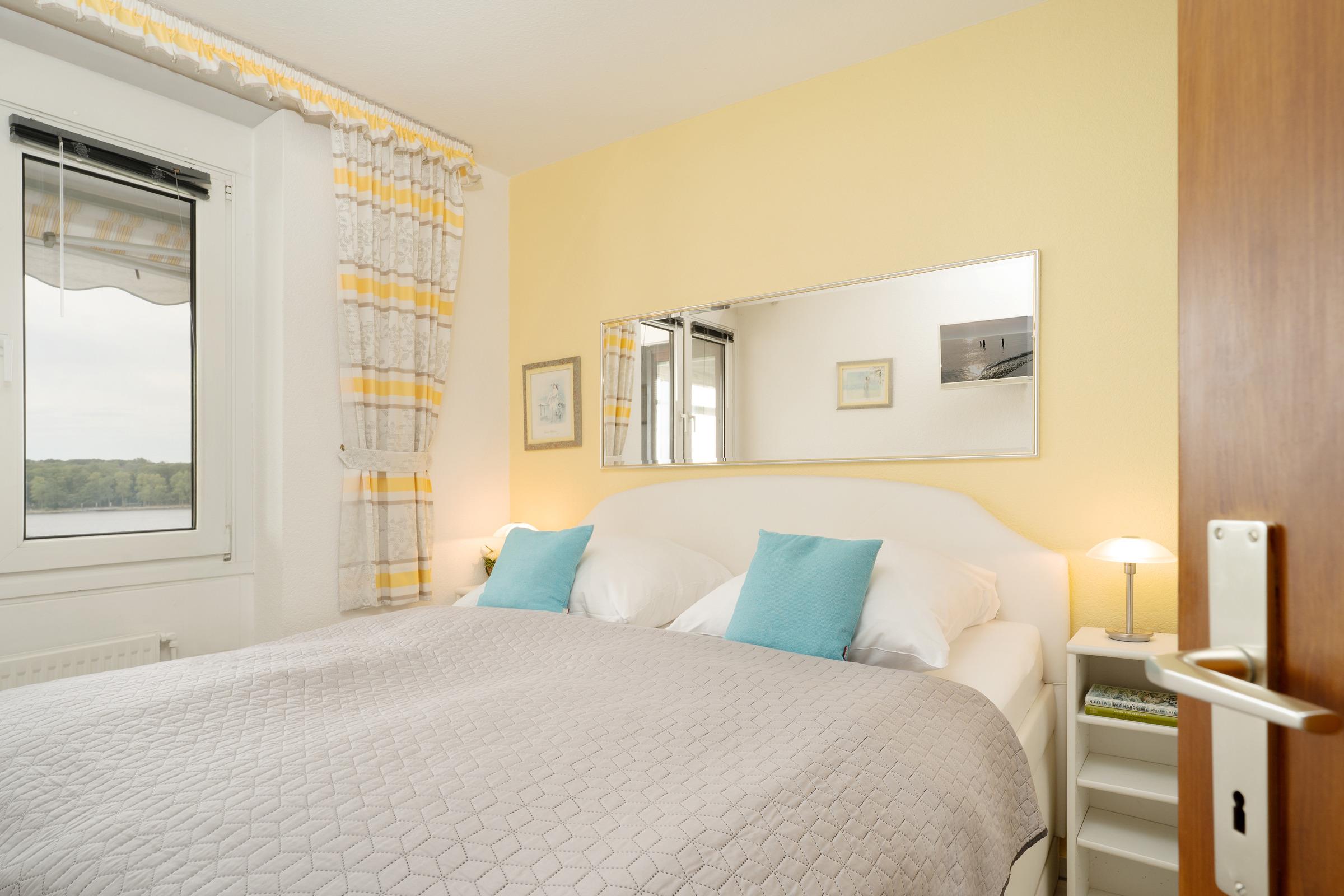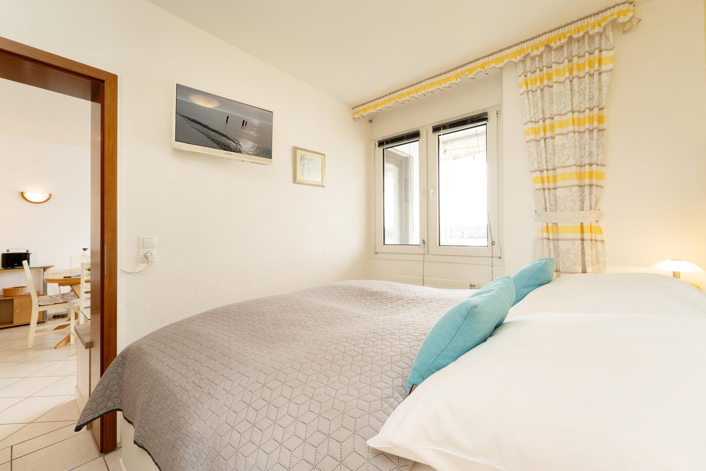 Schlafzimmer 1: 1 Doppelbett (2x 90x200 cm), Kleiderschrank, TV, Verdunkelung: Jalousien, kein Platz für ein Babybett vorhanden